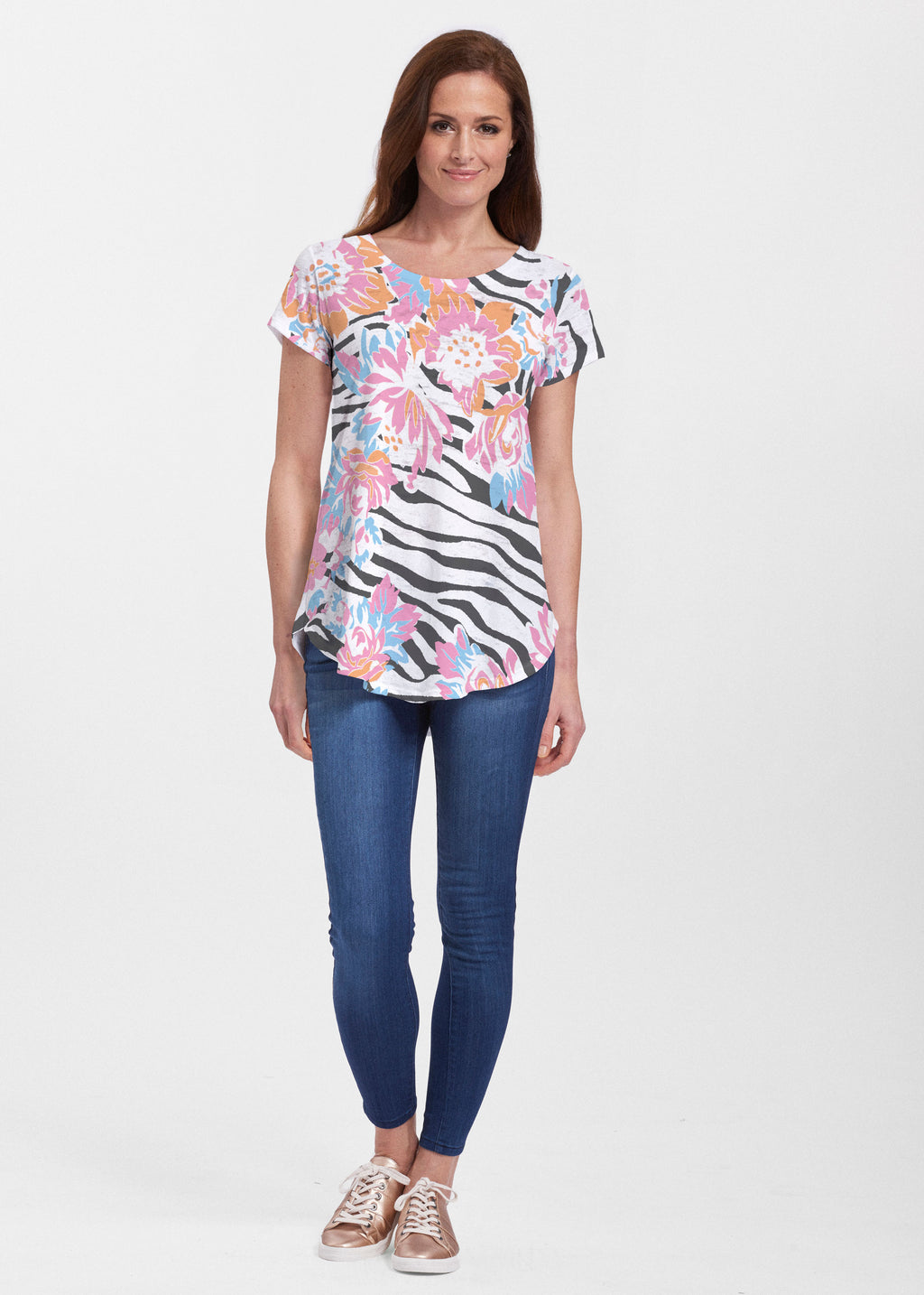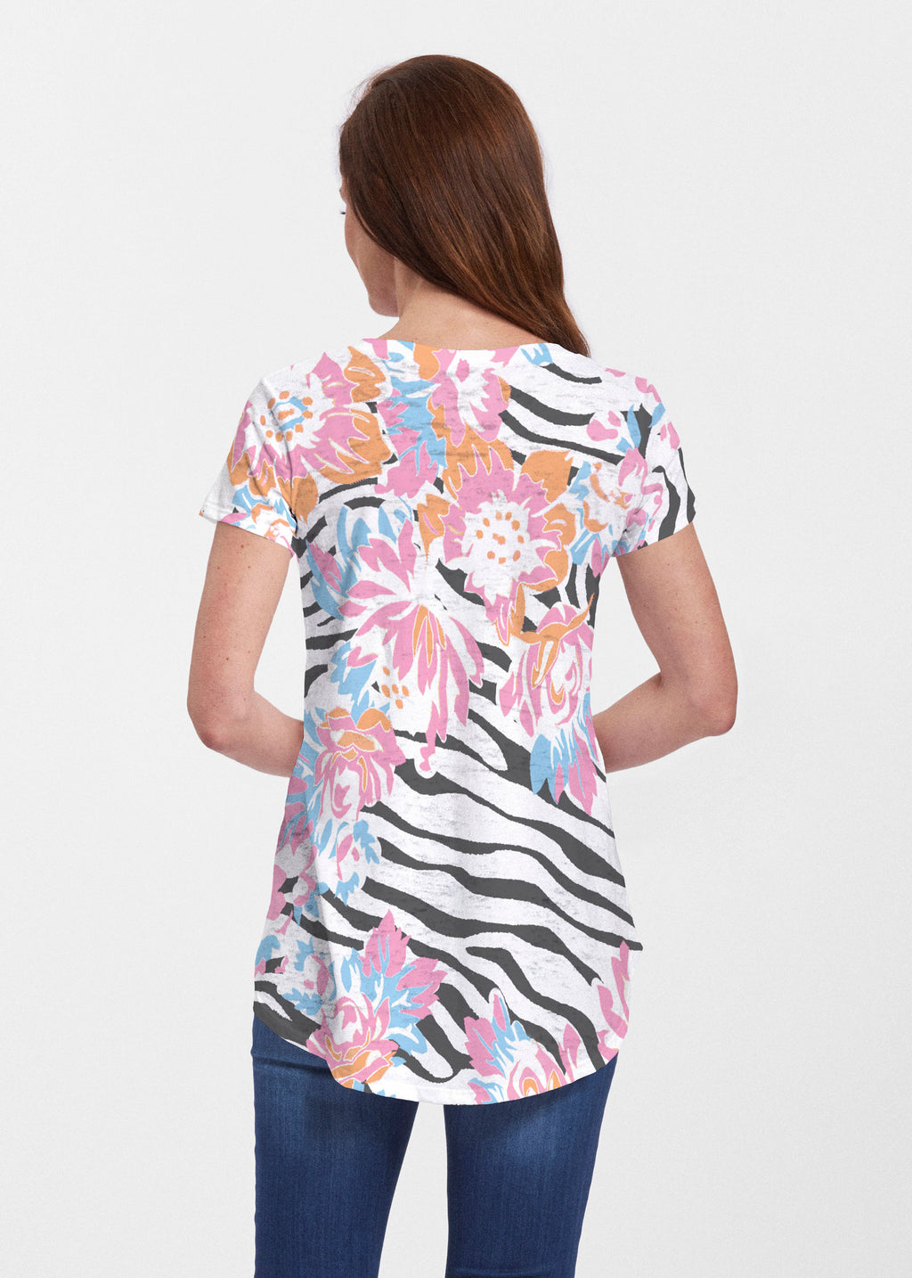 An effortlessly flattering tunic in our soft Signature burnout fabric featuring short sleeves and a scoop neck with a body that flows into a full, swinging shirttail hem.