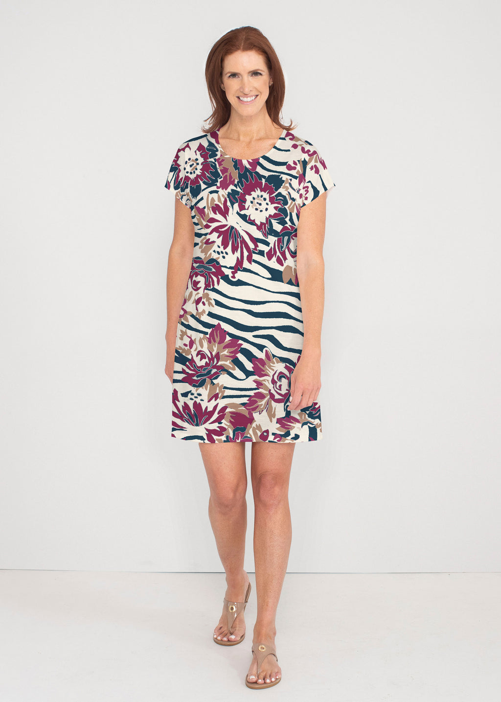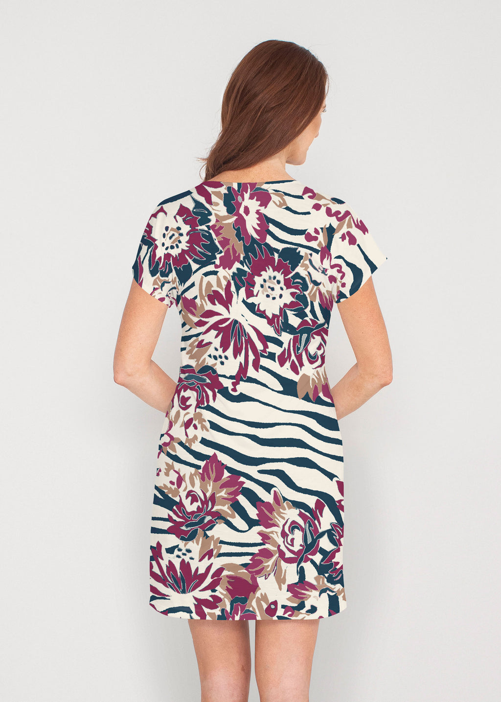 Our Lucy Tee Dress is effortless, versatile and soft to the touch -- perfect for all day style and comfort. A soft crew neckline, seamless sleeve and a relaxed shape made in our vibrant Lucy fabric ends above the knee.