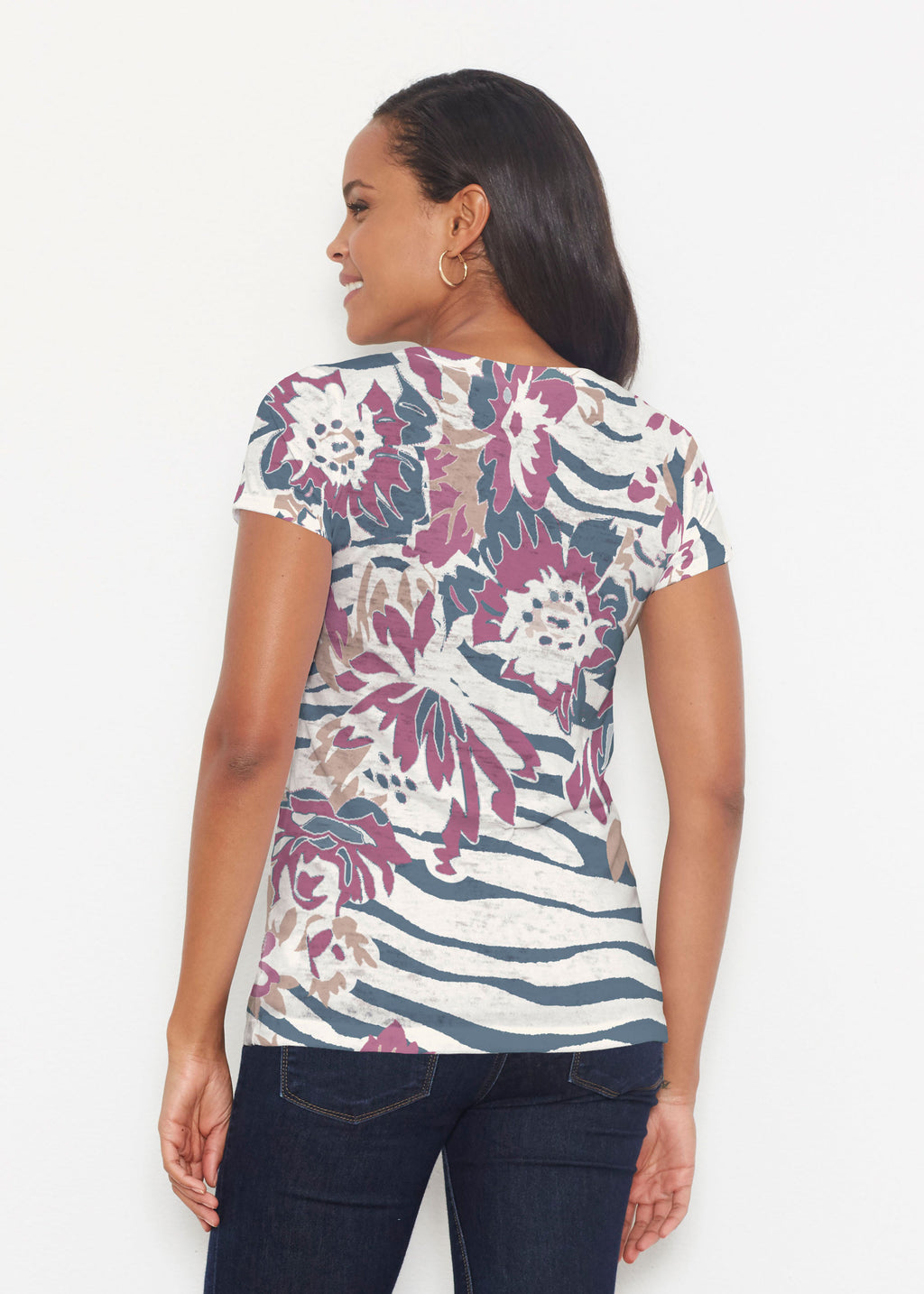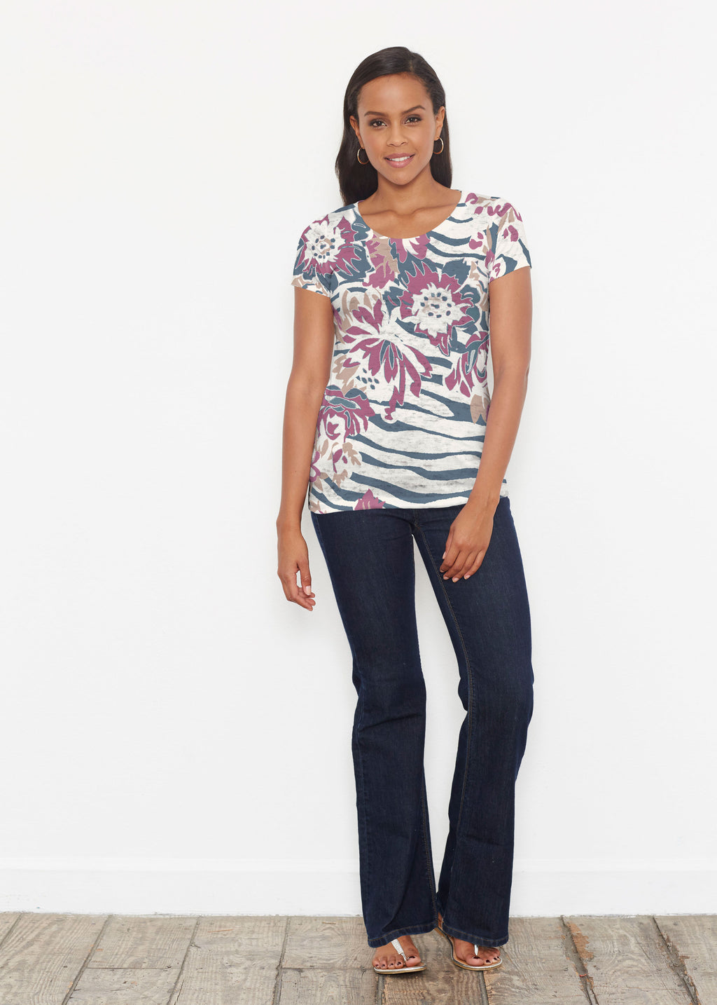 Our scoop neck tee in our casual and supremely soft Signature burnout blend is a best-selling collectible! A relaxed fit falls at the hip.
