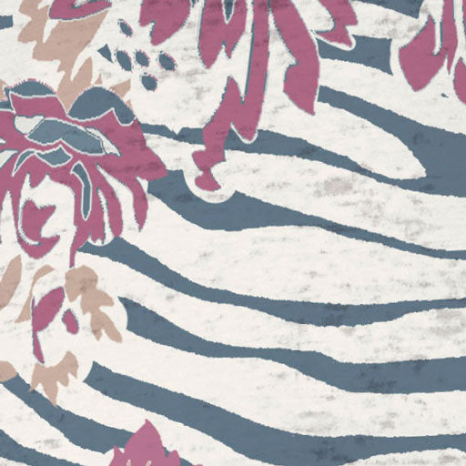 A playful navy and cream zebra print with scattered pops of flowers in burgundy, khaki & navy.
