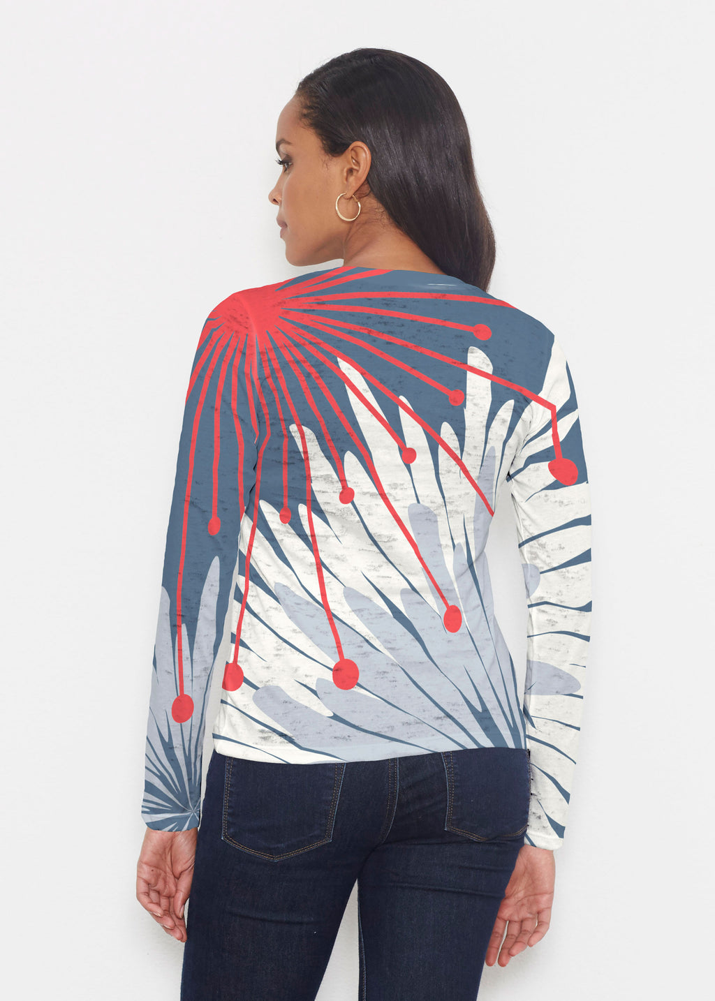 Flower Burst RWB (2027) ~ Banded 3/4 Bell-Sleeve V-Neck Tunic