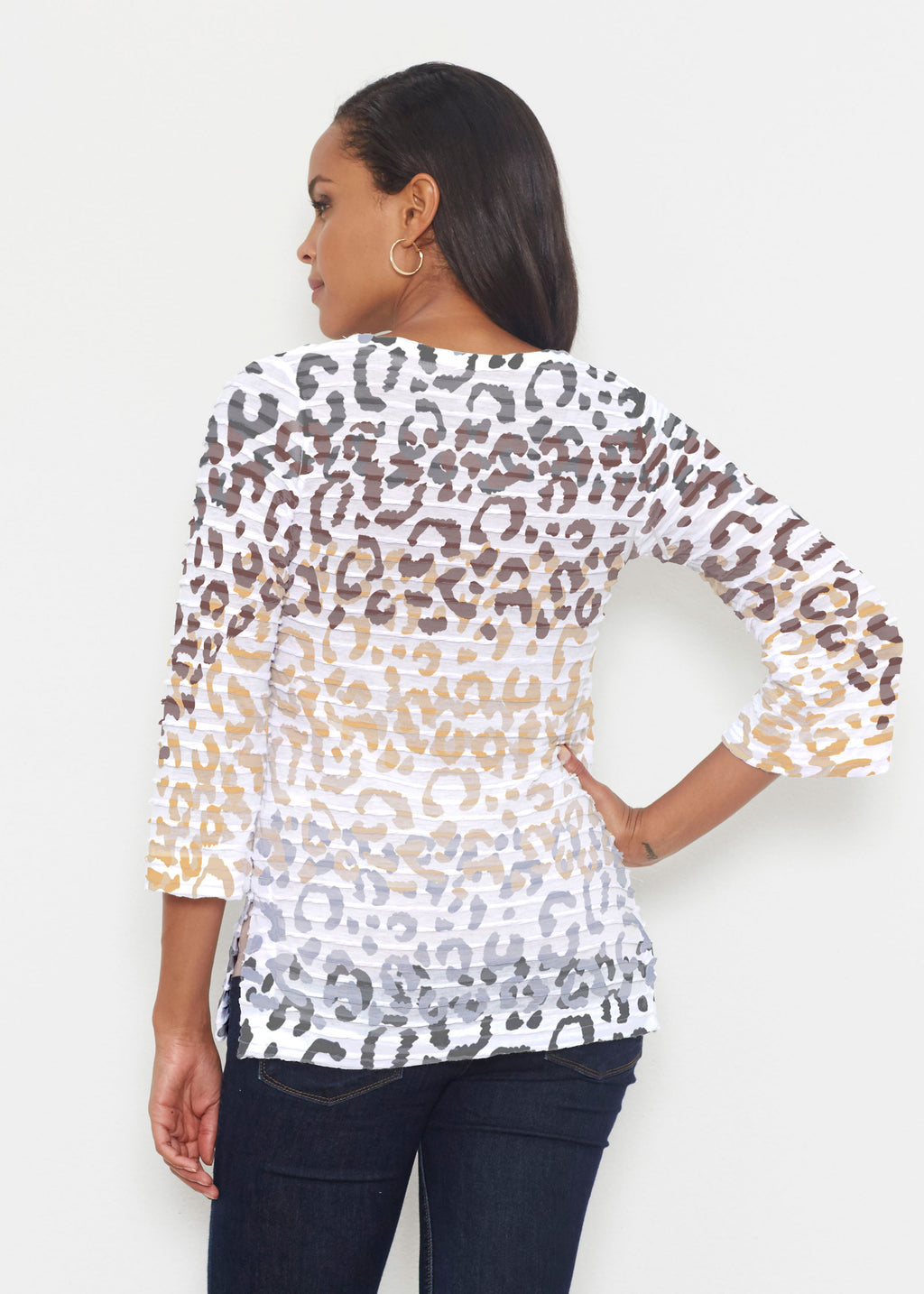 Leopard Ombre (7845) ~ Banded Elbow Sleeve Boat Neck Top