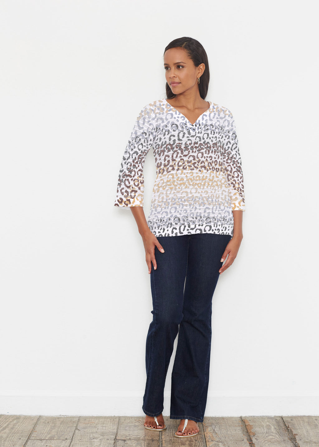 Leopard Ombre (7845) ~ Banded 3/4 Bell-Sleeve V-Neck Tunic