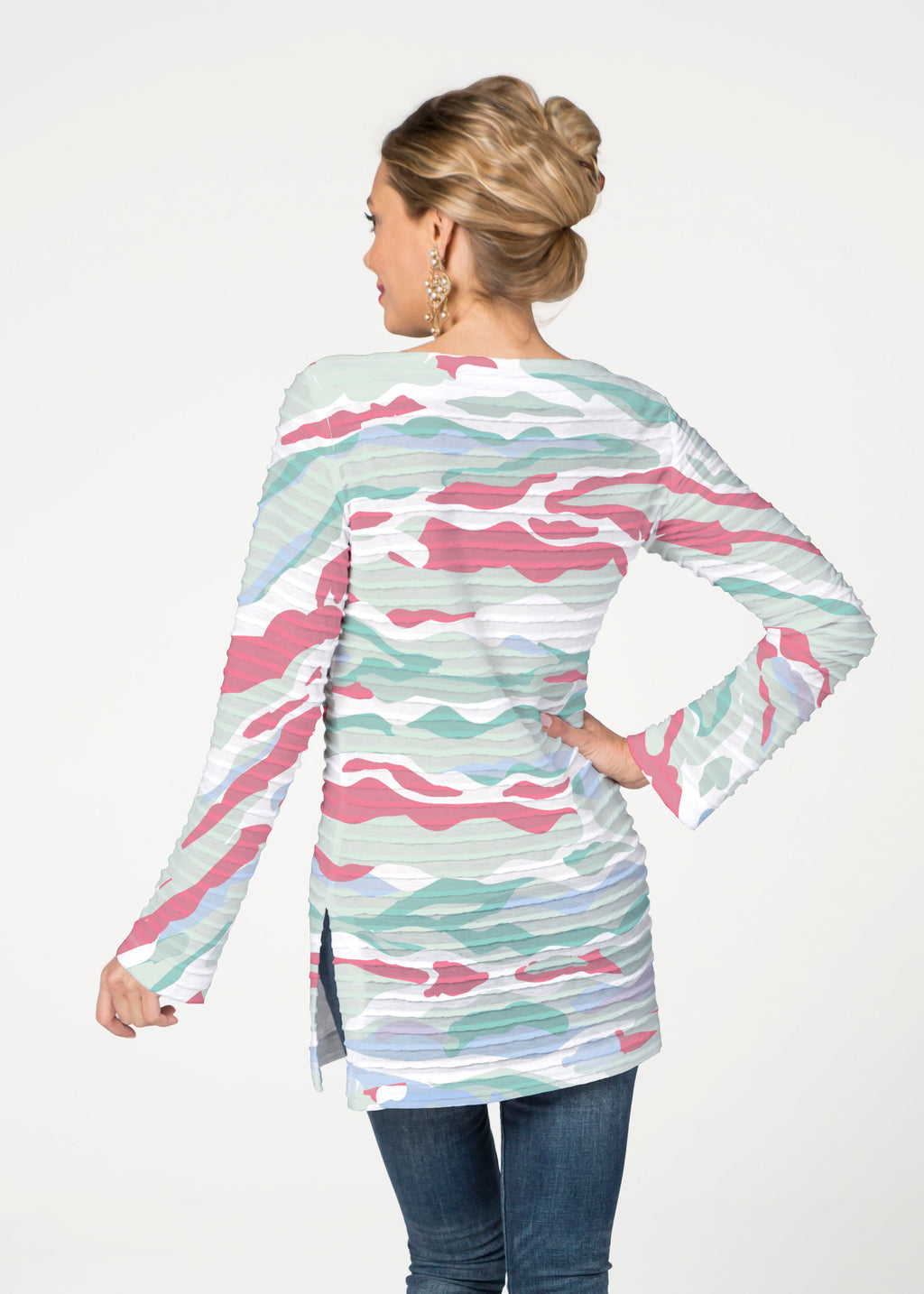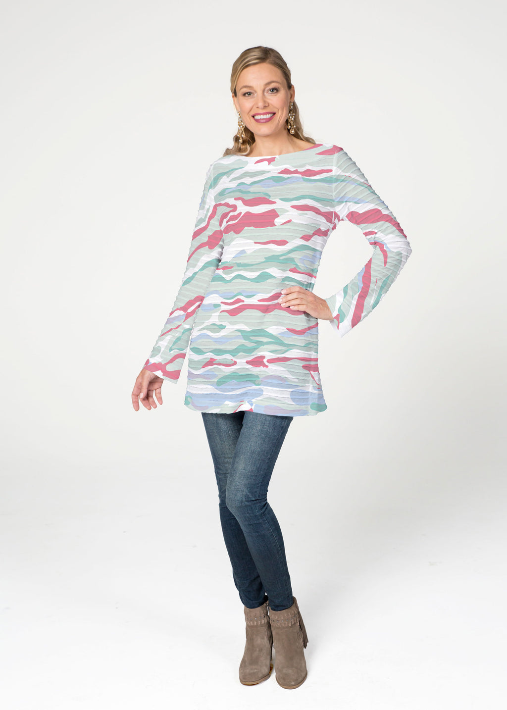 The Banded Boatneck Tunic has the soft pleated texture of our Banded fabric, making this a sophisticated, casual year round piece. A forgiving fit, side vents, with a relaxed full length sleeve combine for a flattering look. The hemline flows gently over the hip.