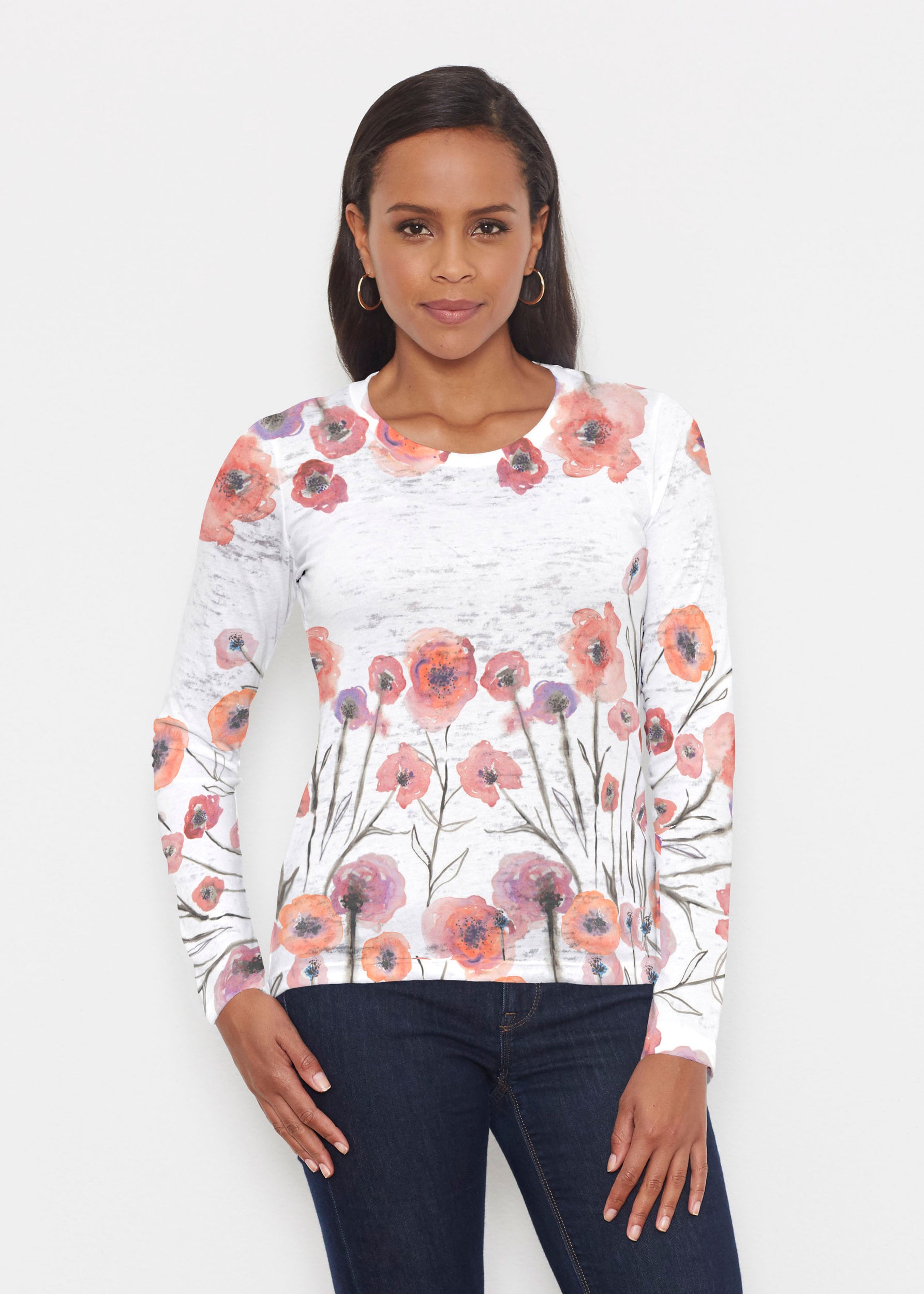 Our popular long sleeve tee is casual and fun in our Signature lightweight burn-out blend. This tee features a relaxed fit, crew neck, and long sleeves.
