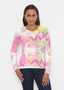 Abstract floral print with shades of fuchsia, light pink, yellow and green designed by Diane Kappa .