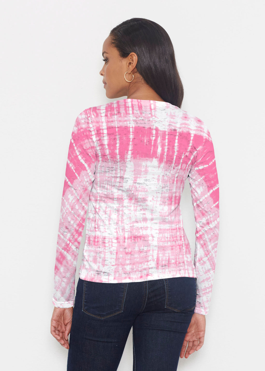 Express your boho side with this easy going abstract print using shades of pink tie dye on faux grasscloth fabric designed by Debra Valencia.