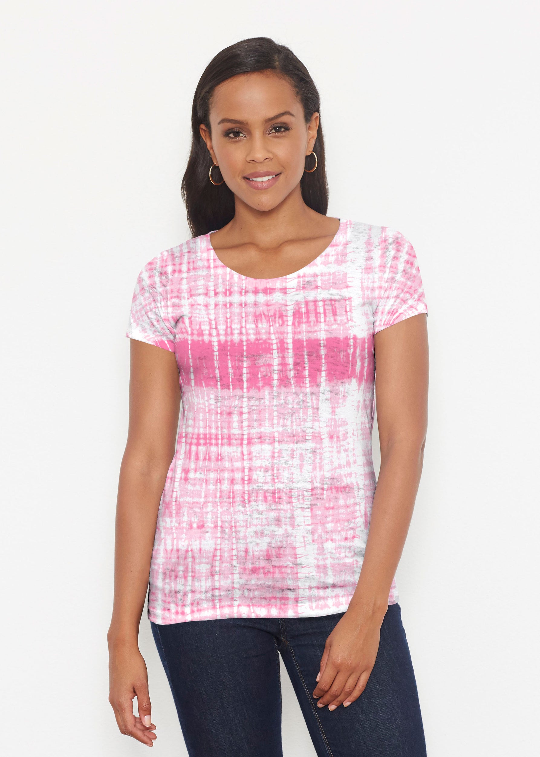Our scoop neck tee in our casual and supremely soft Signature burnout blend is a best-selling collectible! A relaxed fit falls at the hip.