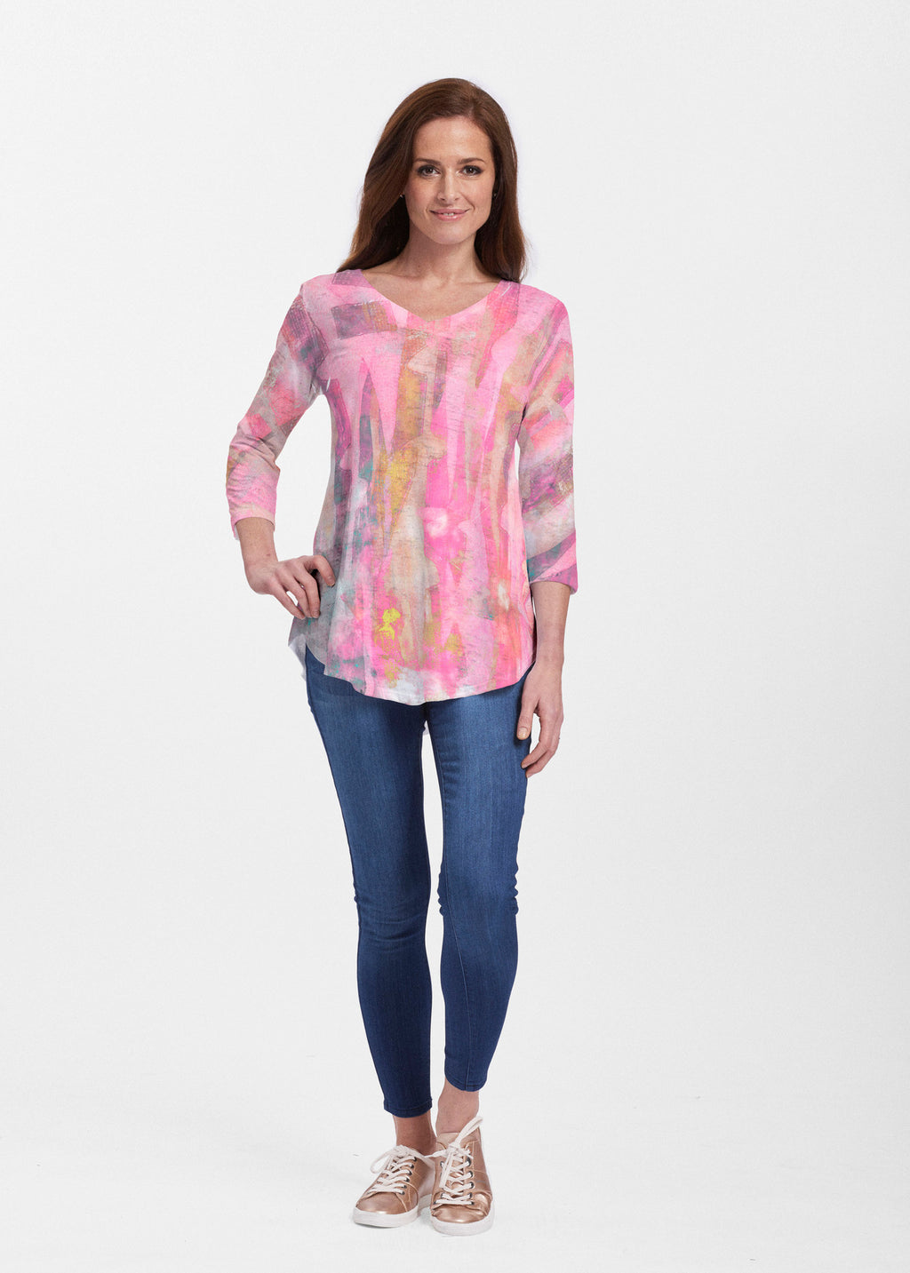 Tiki Pink (15040) ~ Signature V-neck Flowy Tunic