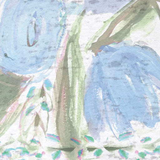 A beautiful watercolor floral print in different hues of blues, green and white designed by Jeanetta Gonzales.