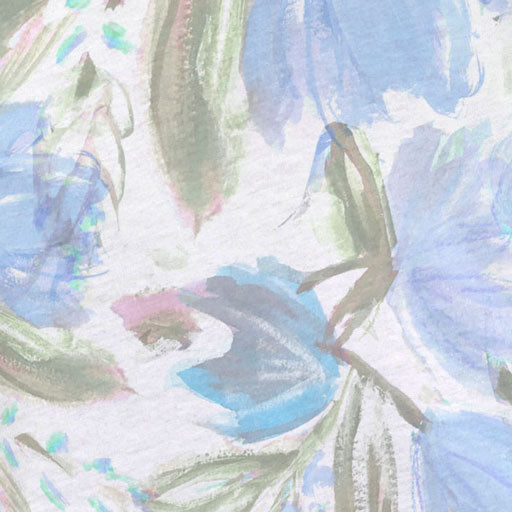 A beautiful watercolor floral print in different hues of blues, green and white designed by Jeanetta Gonzales.