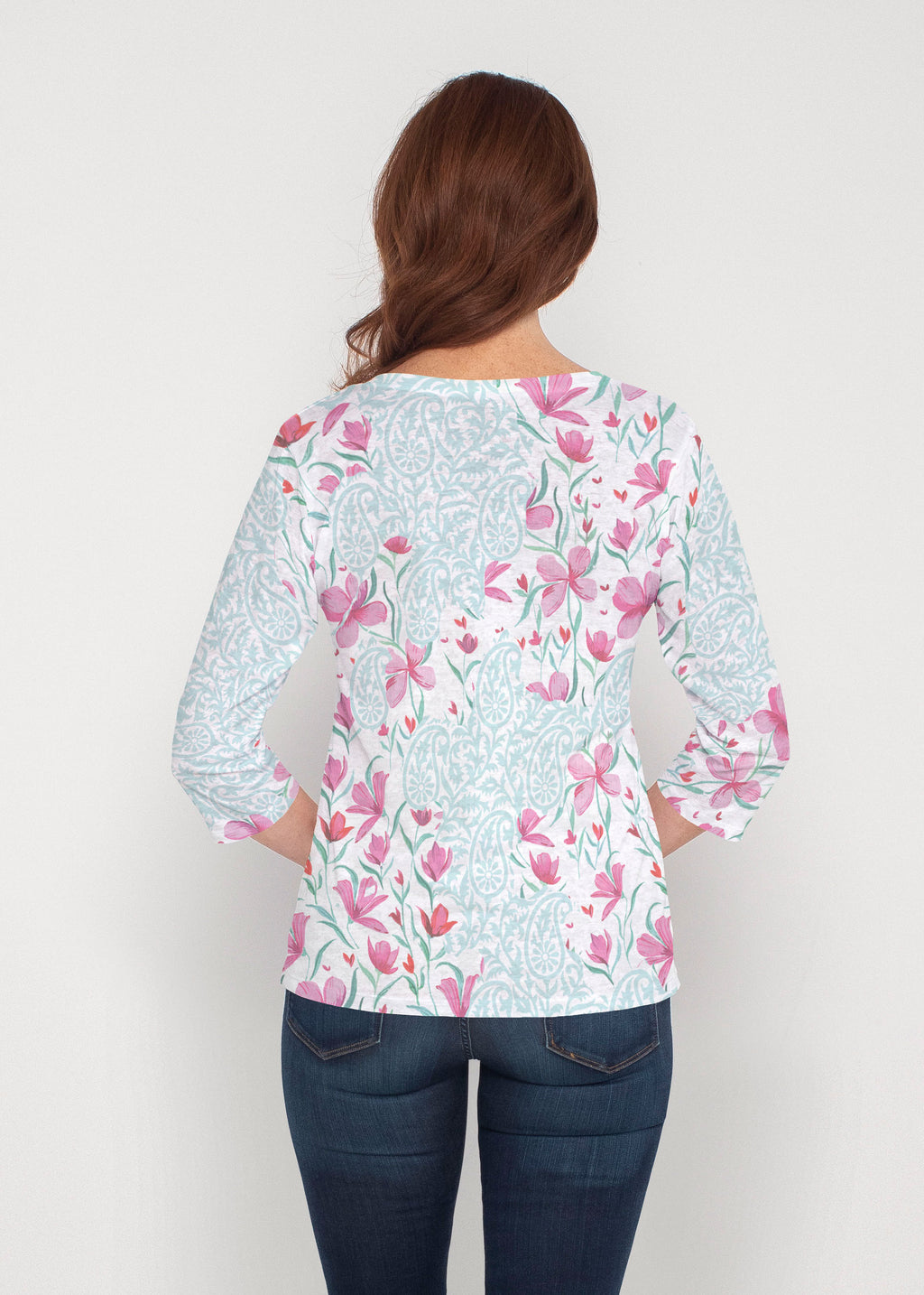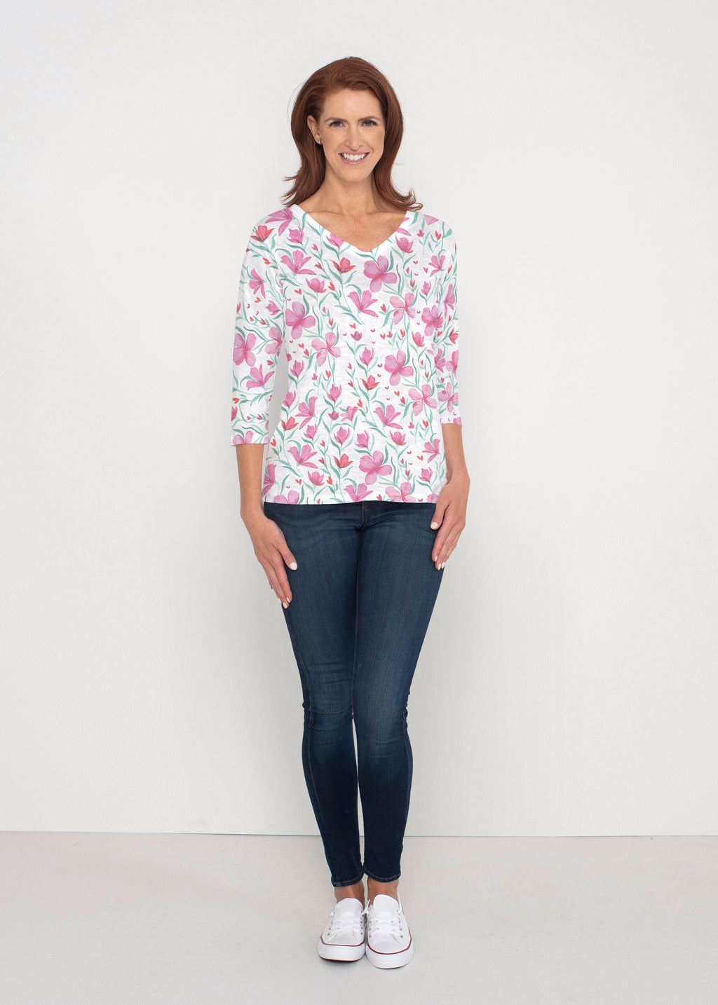 Our casual Signature 3/4 sleeve has a subtle v-neck and is perfectly proportioned and a new best-selling favorite. This relaxed fit is not only flattering but you get to pick that special print for any mood.
