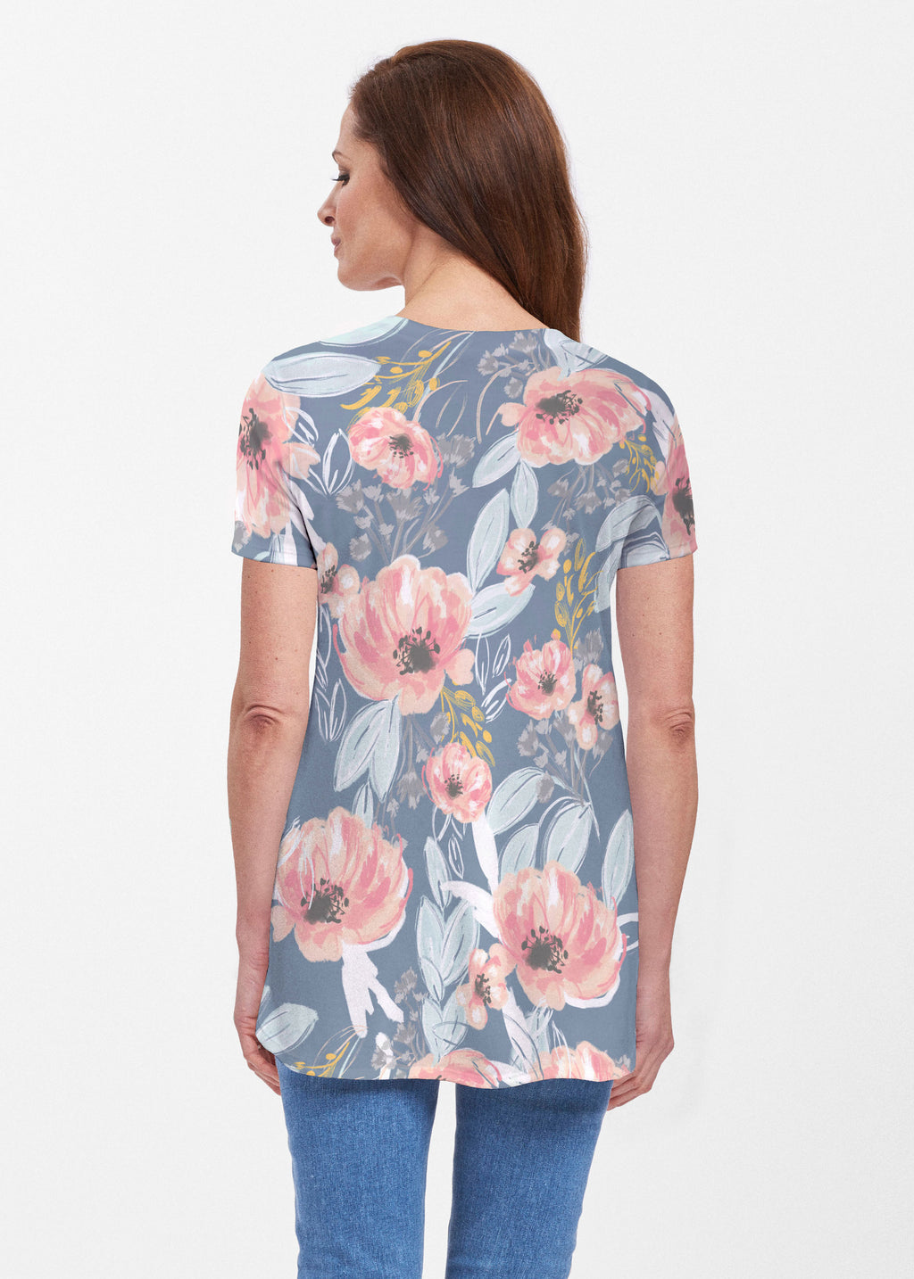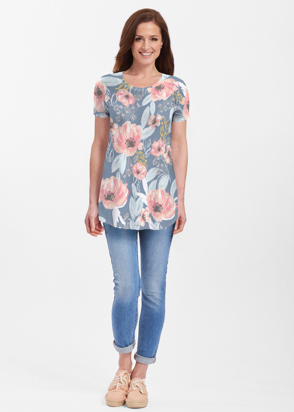 Blossoming Blooms (16226) ~ Short Sleeve Scoop Neck Flowy Tunic