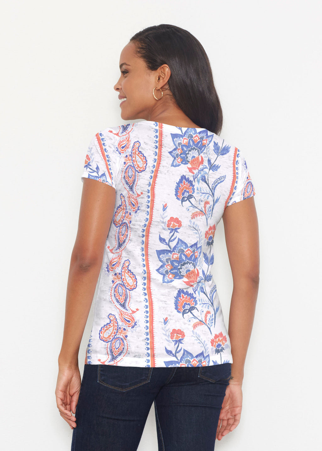 Our scoop neck tee in our casual and supremely soft Signature burnout blend is a best-selling collectible! A relaxed fit falls at the hip.