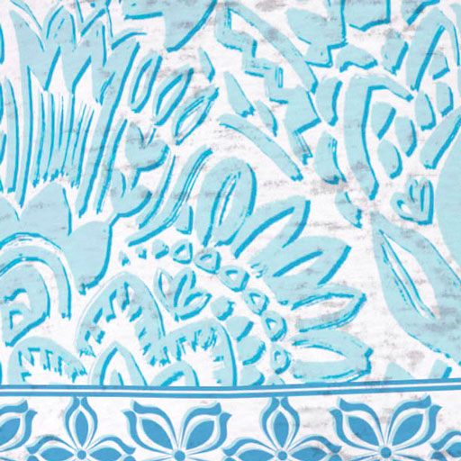 A frolic of summer florals in aqua with a royal blue stroke and a fun coordinating blue & white border print.