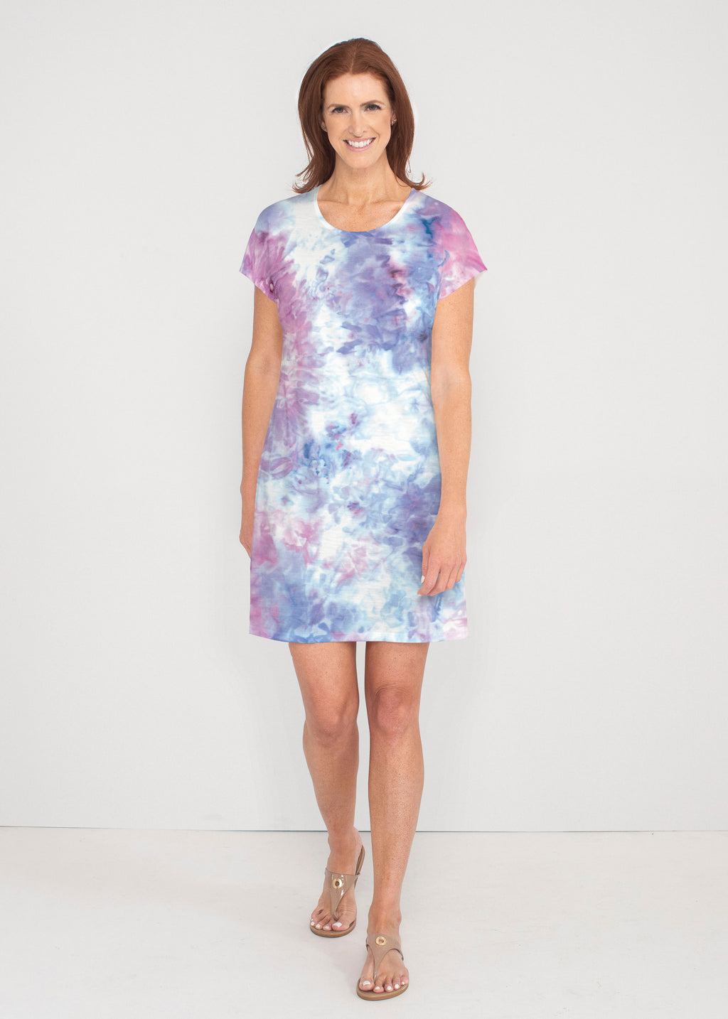 Our Lucy Tee Dress is effortless, versatile and soft to the touch -- perfect for all day style and comfort. A soft crew neckline, seamless sleeve and a relaxed shape made in our vibrant Lucy fabric ends above the knee.