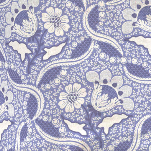 Delicate blue and white florals interwoven with an artistic braided motif designed by Susan Werner.