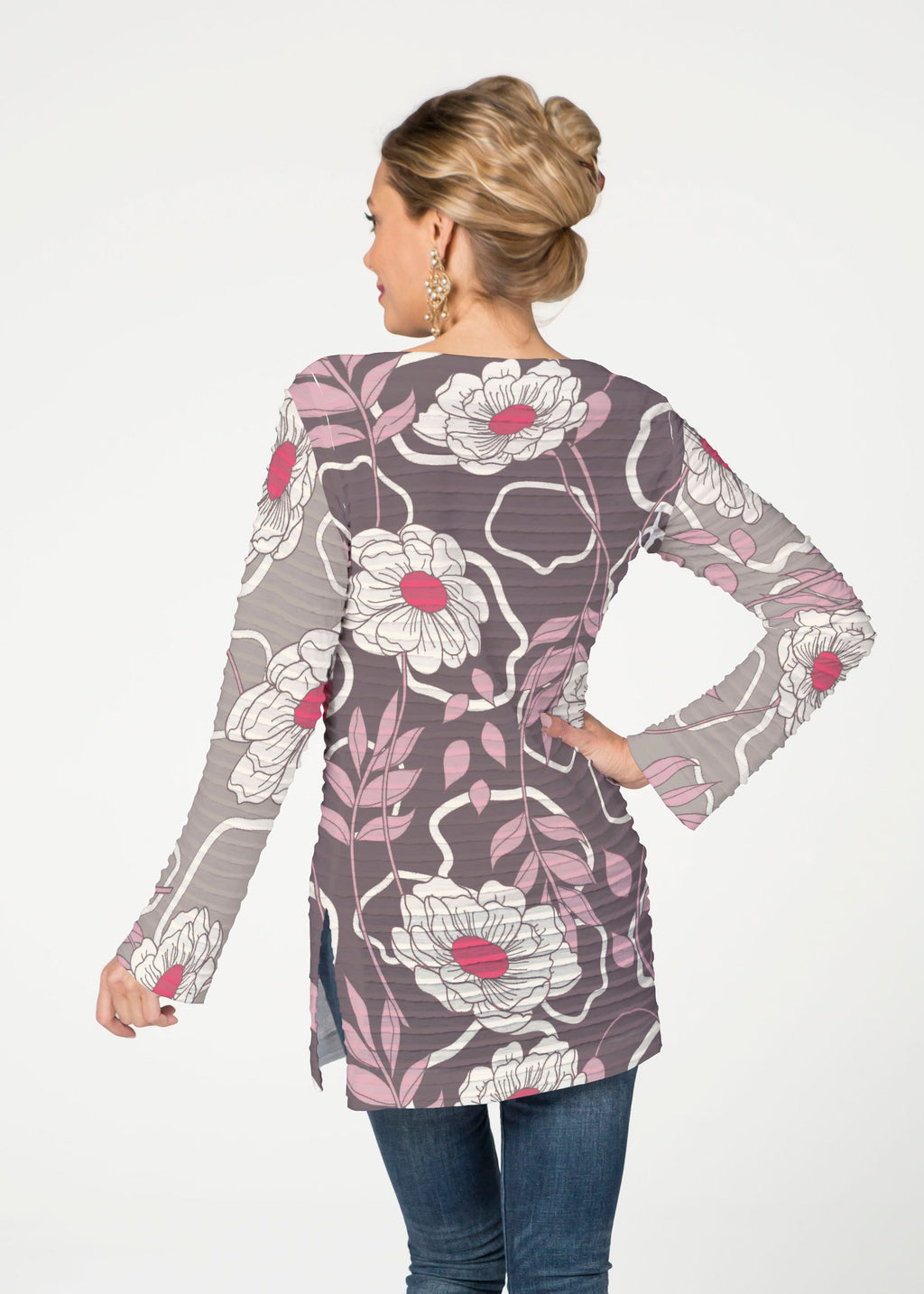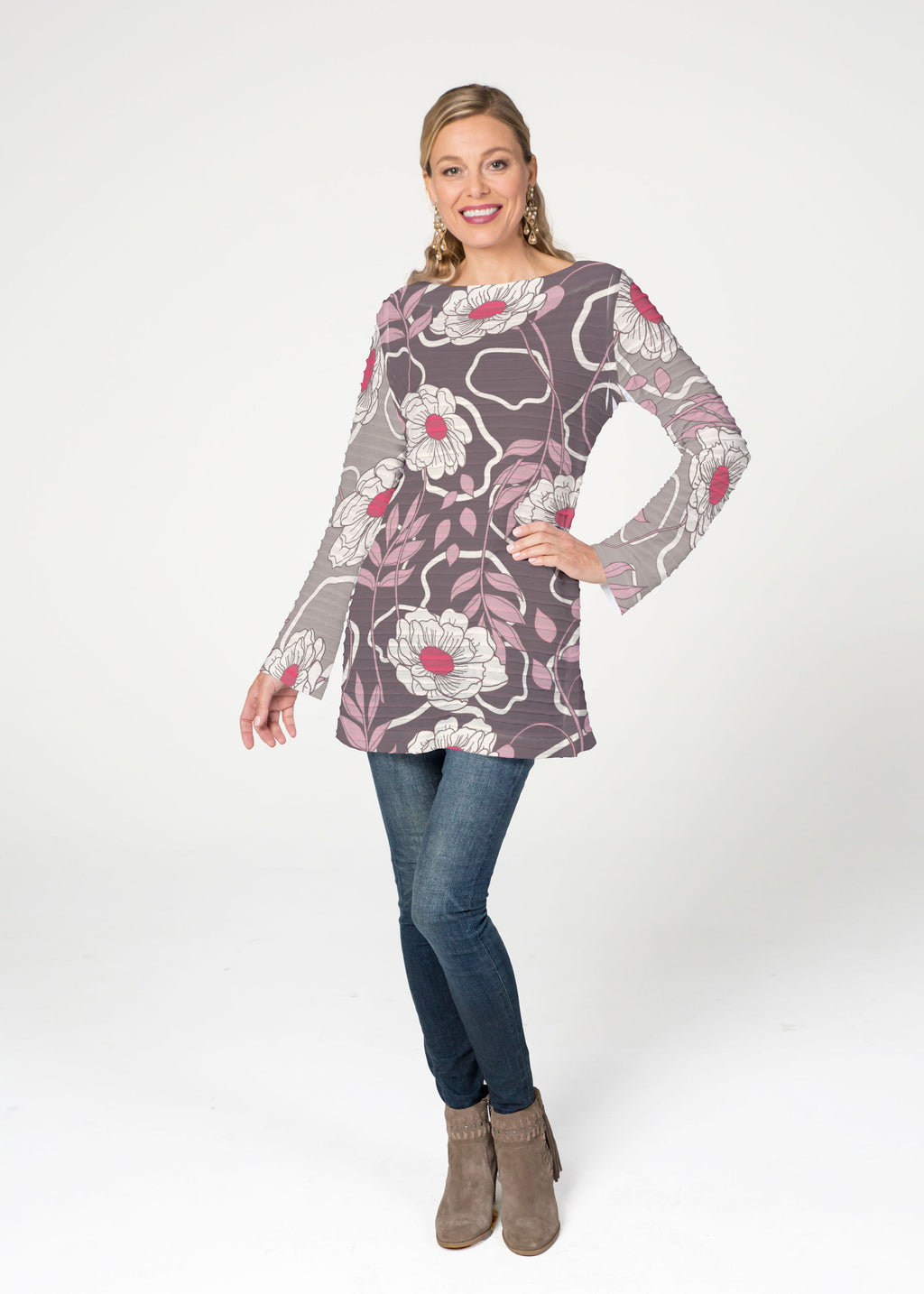 The Banded Boatneck Tunic has the soft pleated texture of our Banded fabric, making this a sophisticated, casual year round piece. A forgiving fit, side vents, with a relaxed full length sleeve combine for a flattering look. The hemline flows gently over the hip.