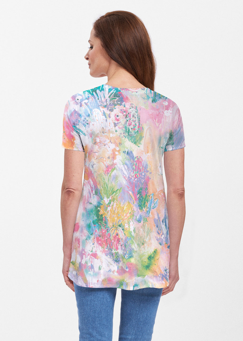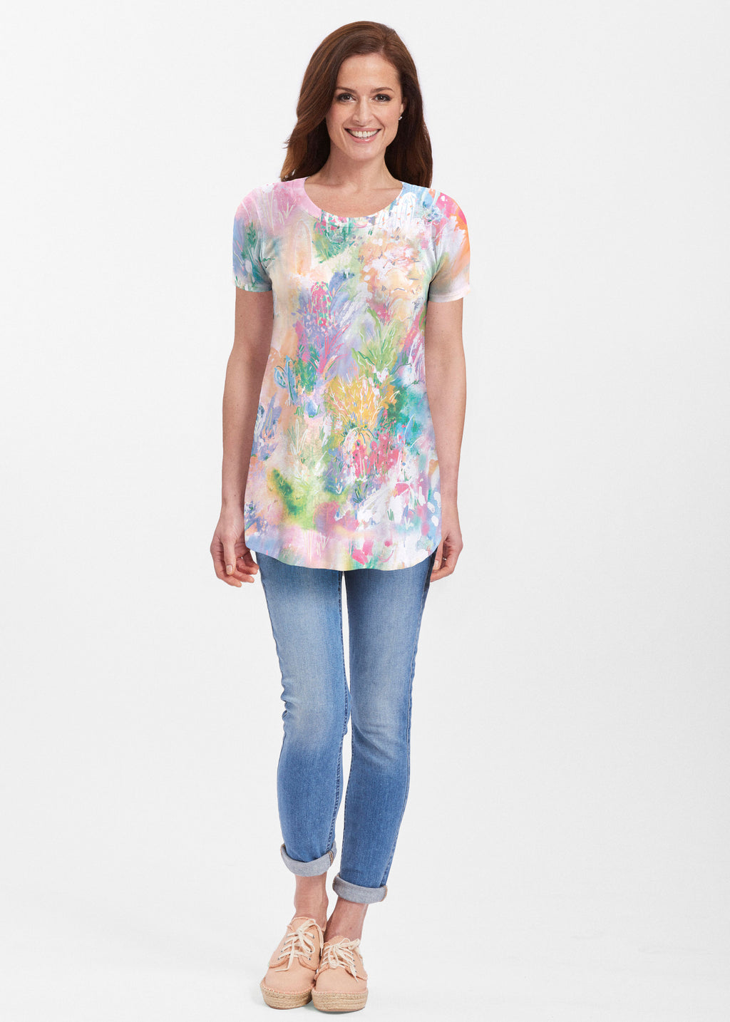 Abstract Pastel Ikat (7813) ~ Butterknit Short Sleeve Tunic