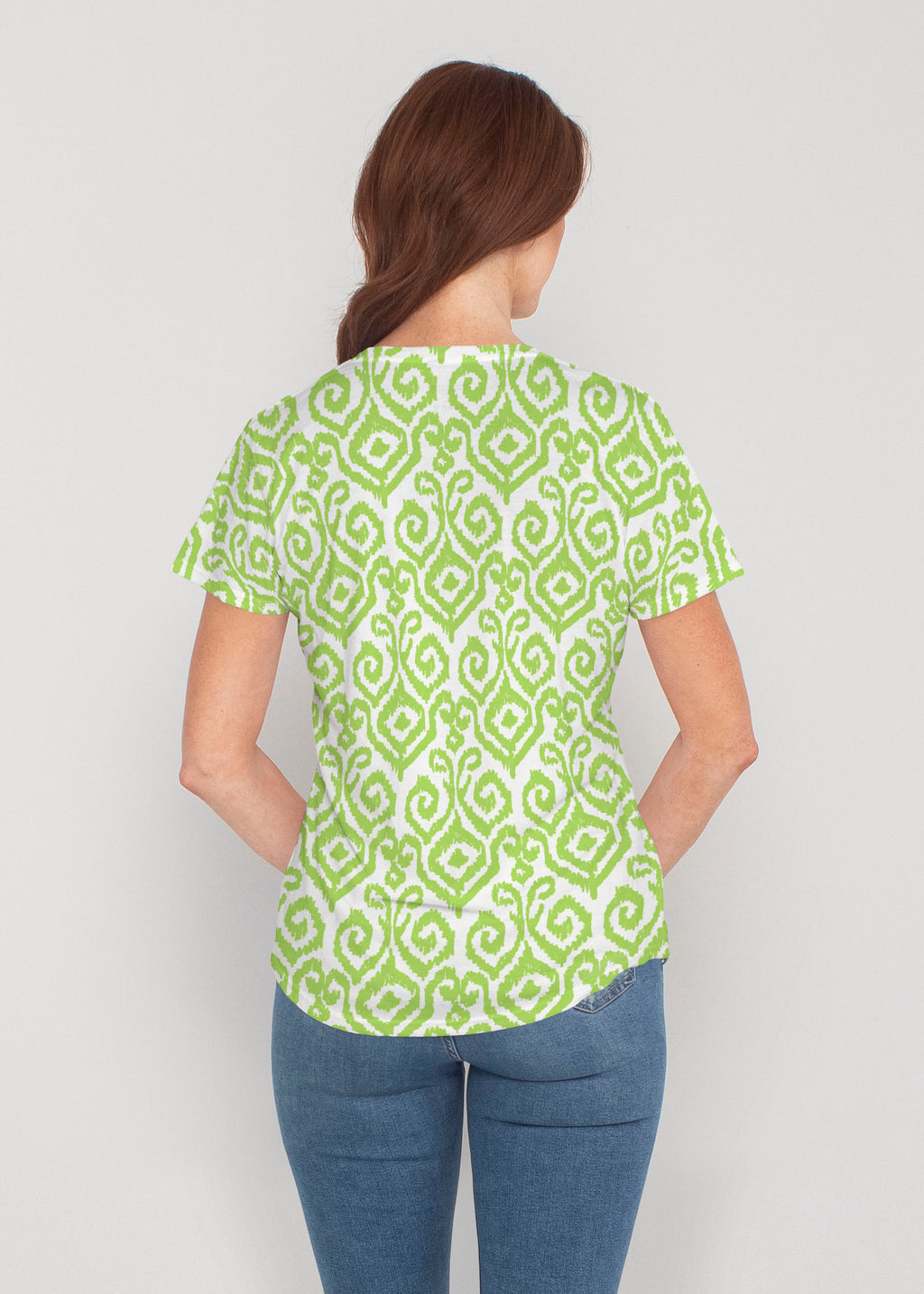 Moroccan motif in Aqua and Lime painted against an soft white back-drop by Susan Werner.