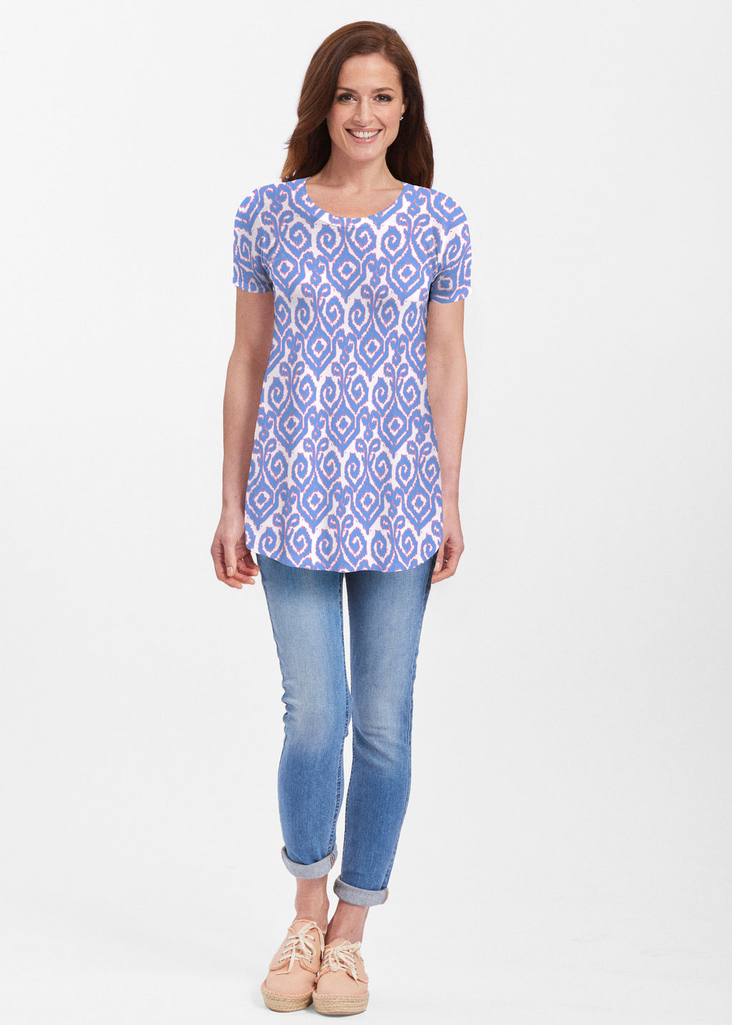 Abstract Pastel Ikat (7813) ~ Butterknit Short Sleeve Tunic