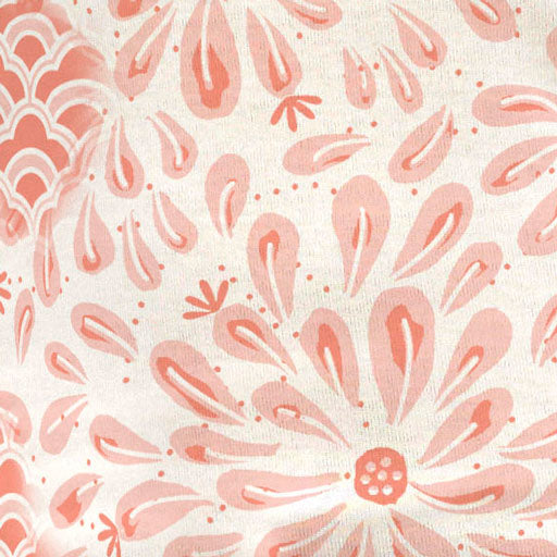 Fireworks of tangerine and peach with splashes of a geo print in tangerine and peach.