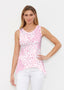 This tank is the perfect combination of an elegant shape with a sporty look. A high-low cascading hemline falls loosely over the hip in our Signature burnout fabric. No sleeves and a shallow scoop neckline give this tank its sporty vibe. -- Your one-of-a-kind garment is created using all-over soft garment sublimation printing. Selected designs are individually printed into your garment. Cotton/Polyester blend.