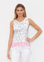 This tank is the perfect combination of an elegant shape with a sporty look. A high-low cascading hemline falls loosely over the hip in our Signature burnout fabric. No sleeves and a shallow scoop neckline give this tank its sporty vibe. -- Your one-of-a-kind garment is created using all-over soft garment sublimation printing. Selected designs are individually printed into your garment. Cotton/Polyester blend.