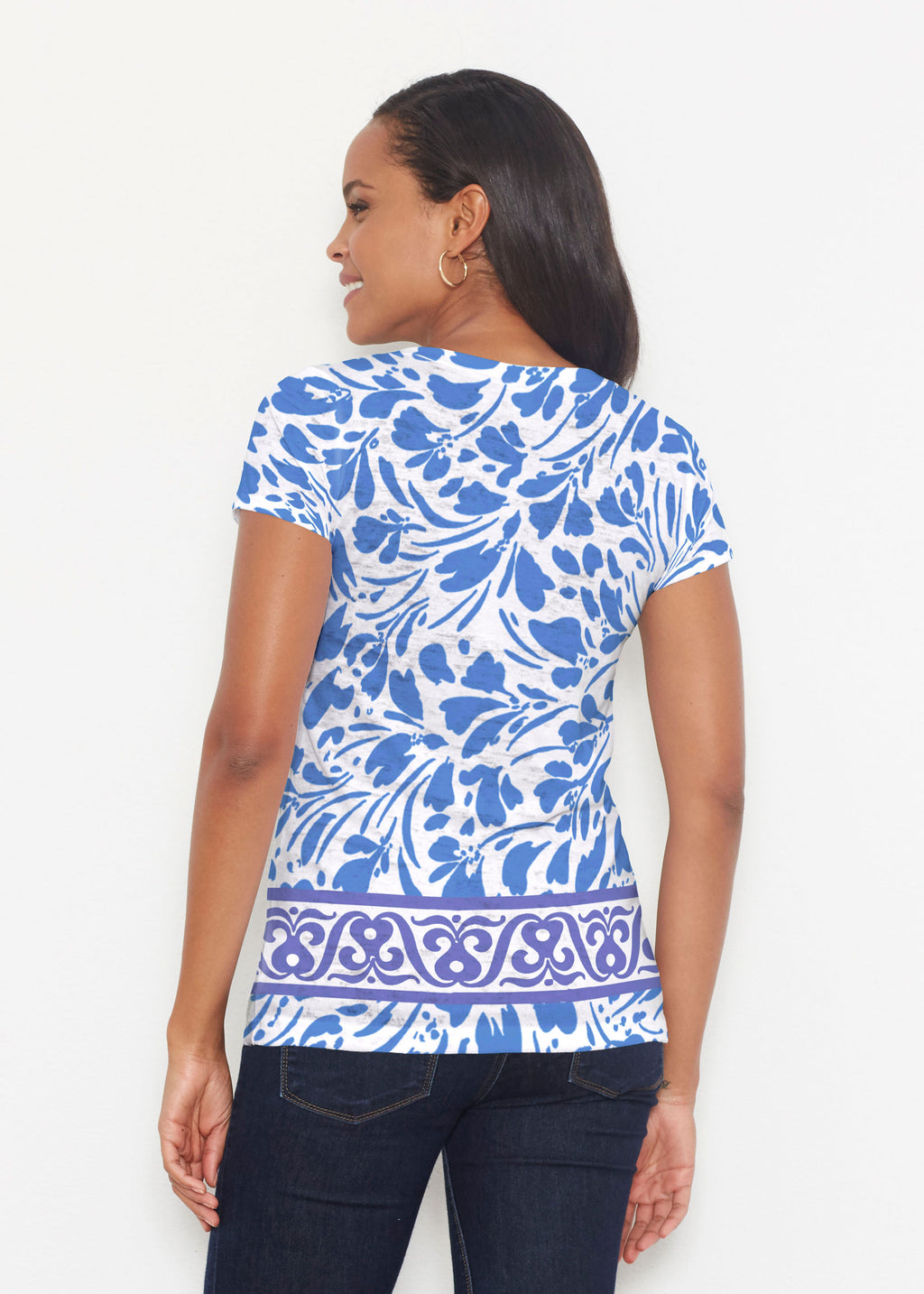 Our scoop neck tee in our casual and supremely soft Signature burnout blend is a best-selling collectible! A relaxed fit falls at the hip.