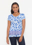Ethereal splashes of blue accented with an imperial royal blue border combines for a splendidly fun design by Susan Werner.