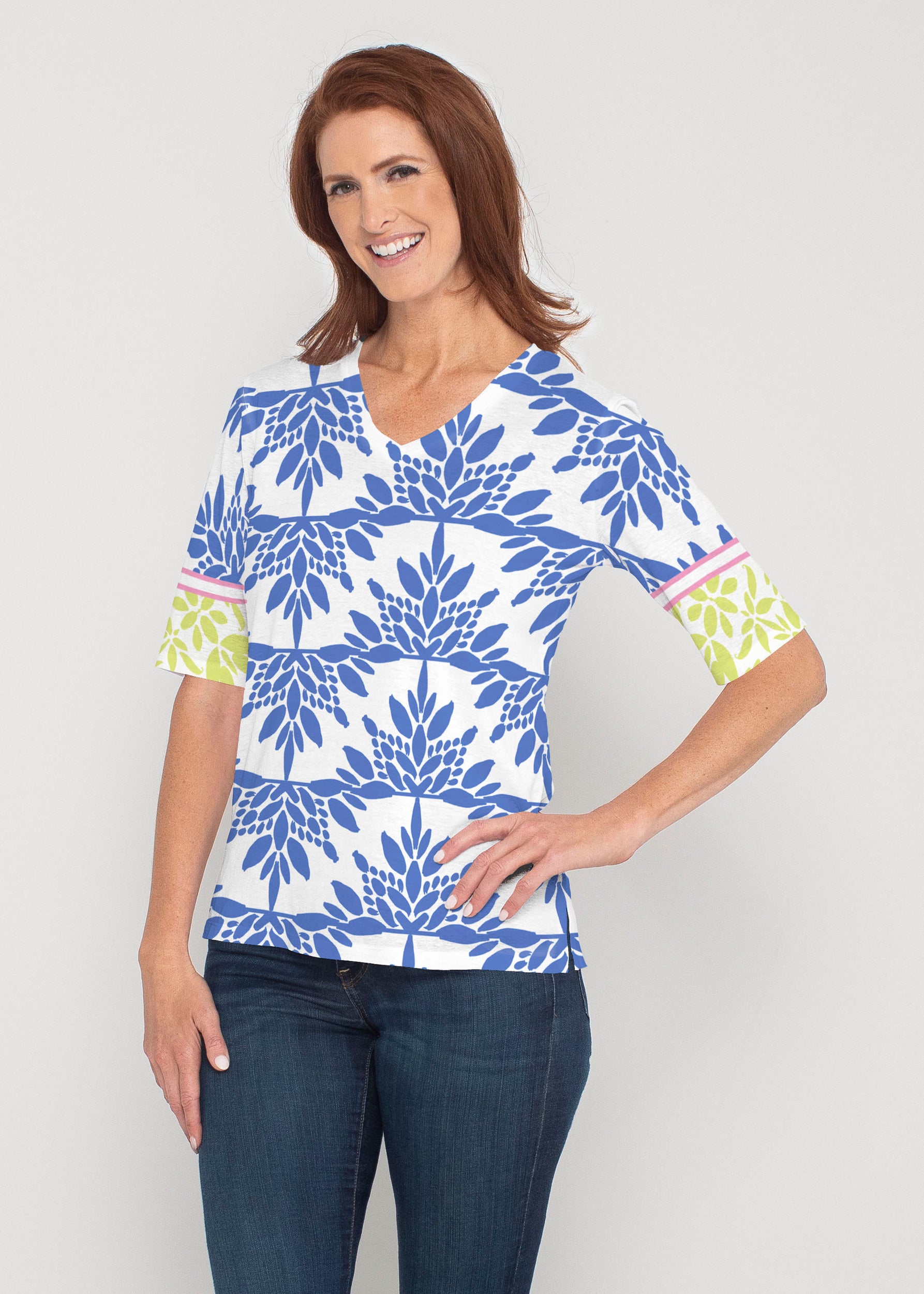 This Signature V-neck top combines the perfect for all day comfort with a relaxed fit and just the right sleeve length for stylish fun. Great on its own or the perfect layering piece.