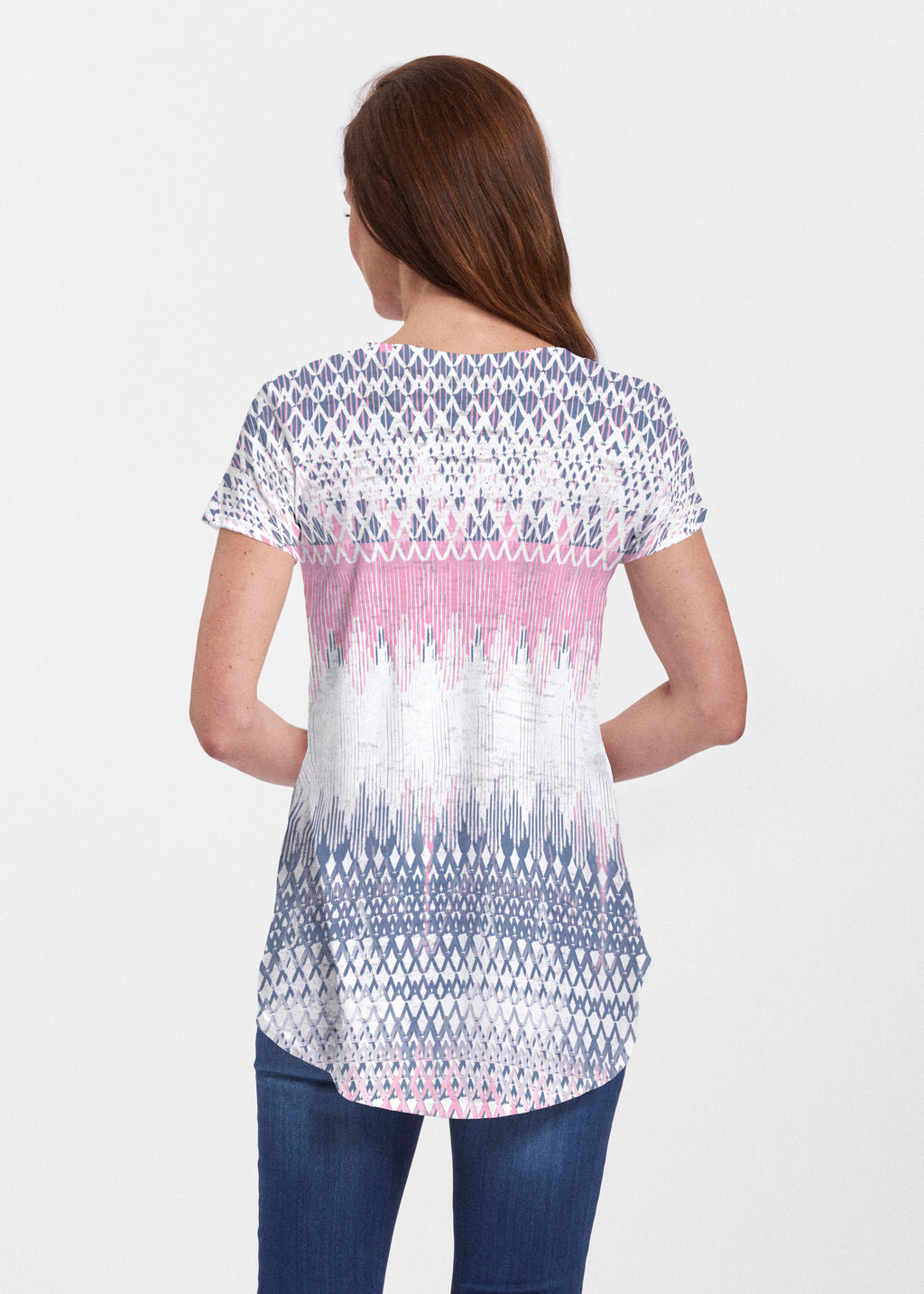 An effortlessly flattering tunic in our soft Signature burnout fabric featuring short sleeves and a scoop neck with a body that flows into a full, swinging shirttail hem.