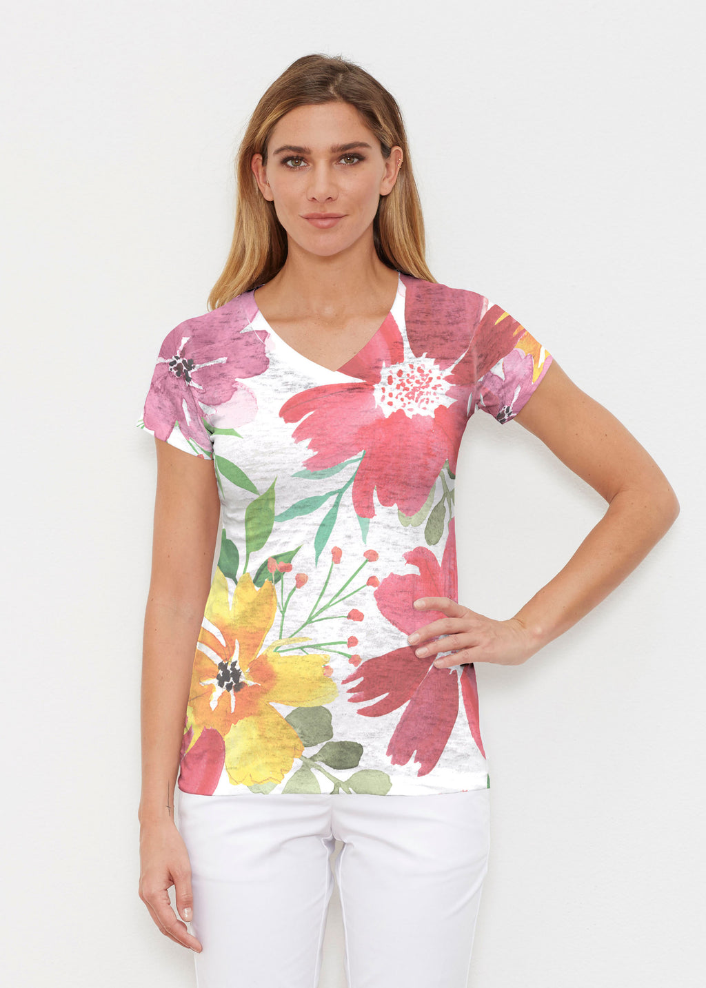 • Festive Bloom (8154) ~ Signature Cap Sleeve V-Neck Shirt