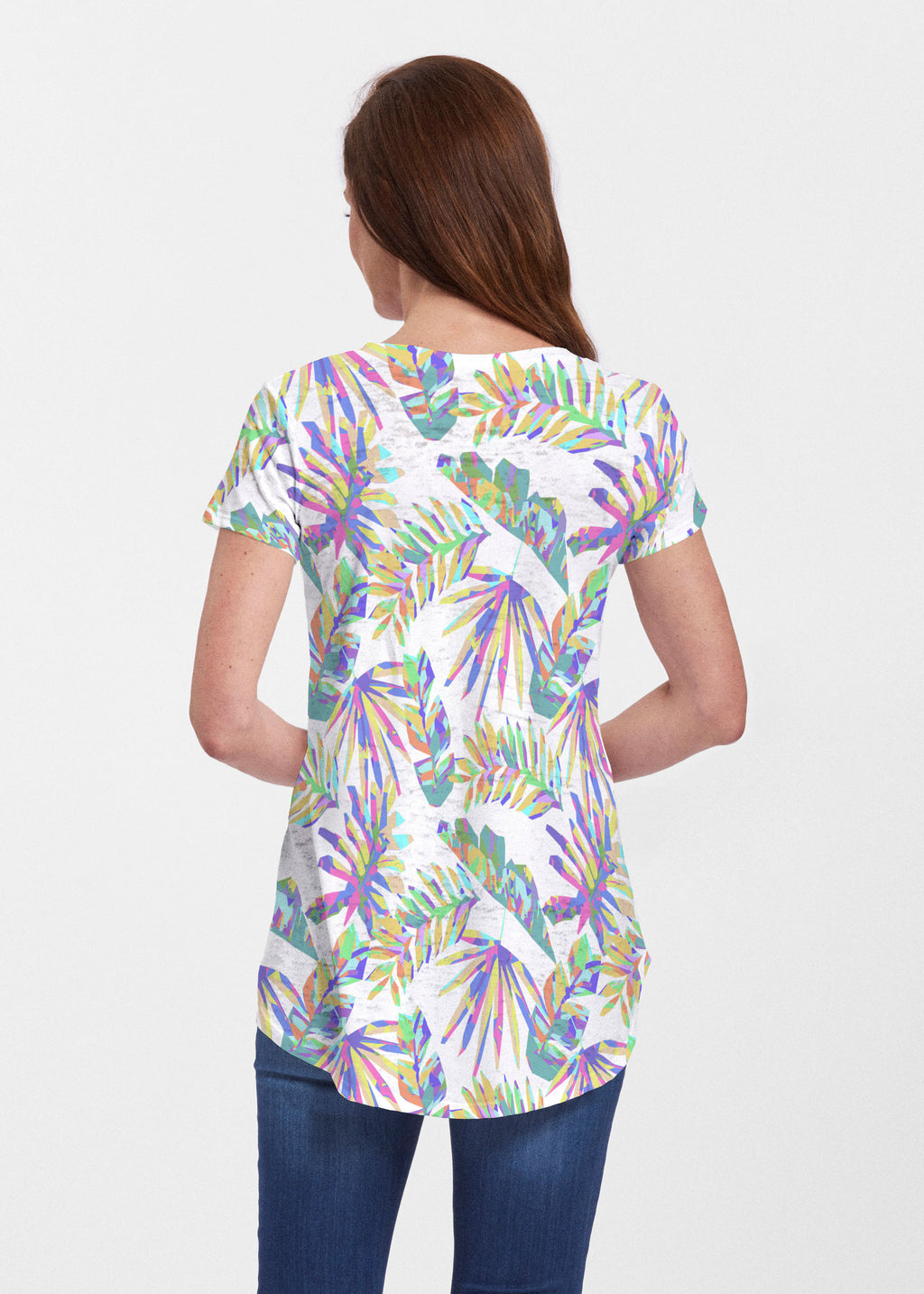An effortlessly flattering tunic in our soft Signature burnout fabric featuring short sleeves and a scoop neck with a body that flows into a full, swinging shirttail hem.
