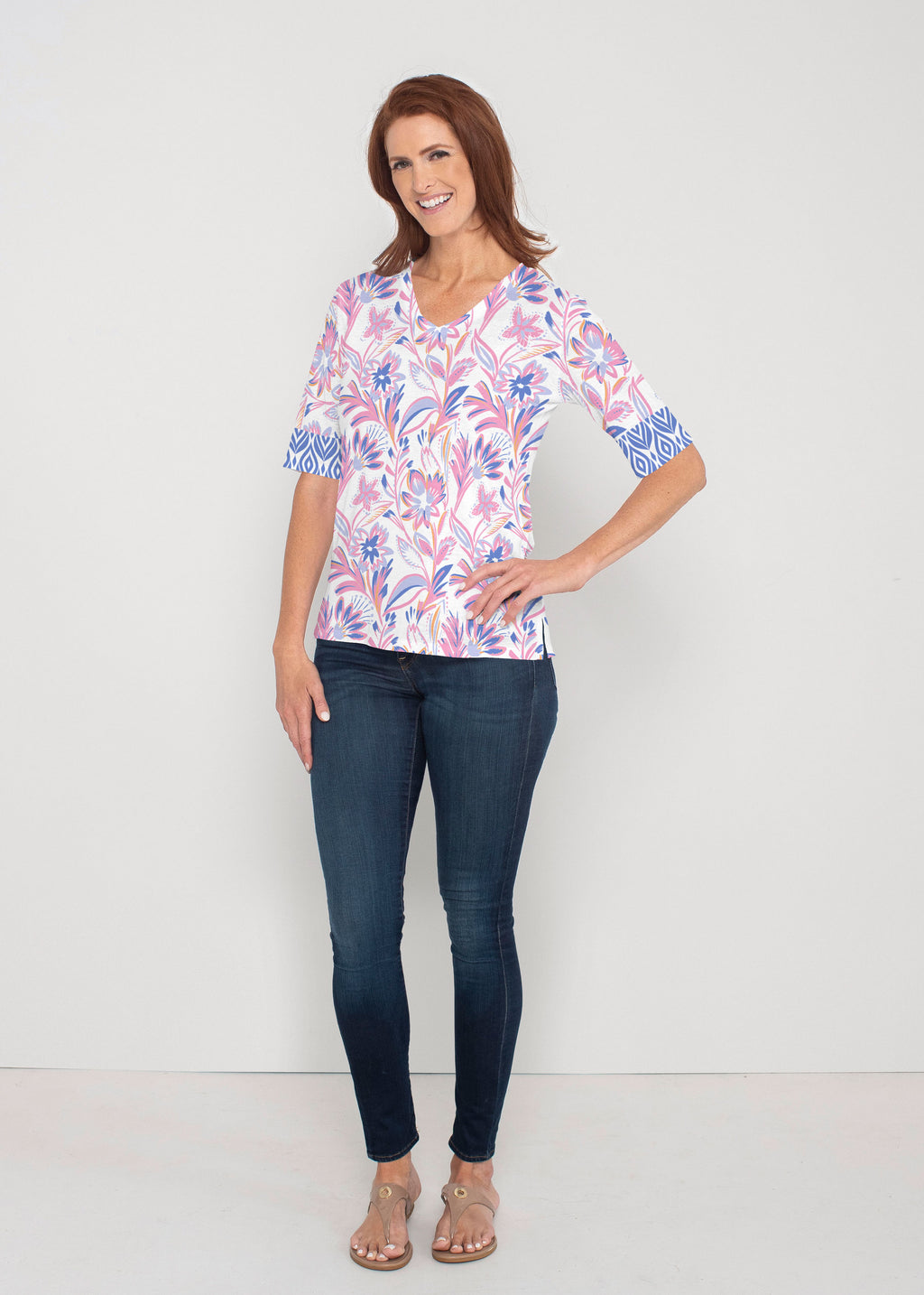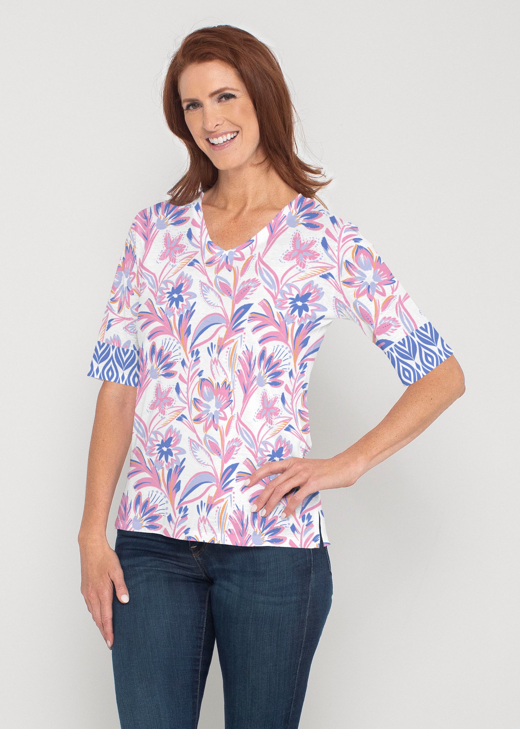 This Signature V-neck top combines the perfect for all day comfort with a relaxed fit and just the right sleeve length for stylish fun. Great on its own or the perfect layering piece.