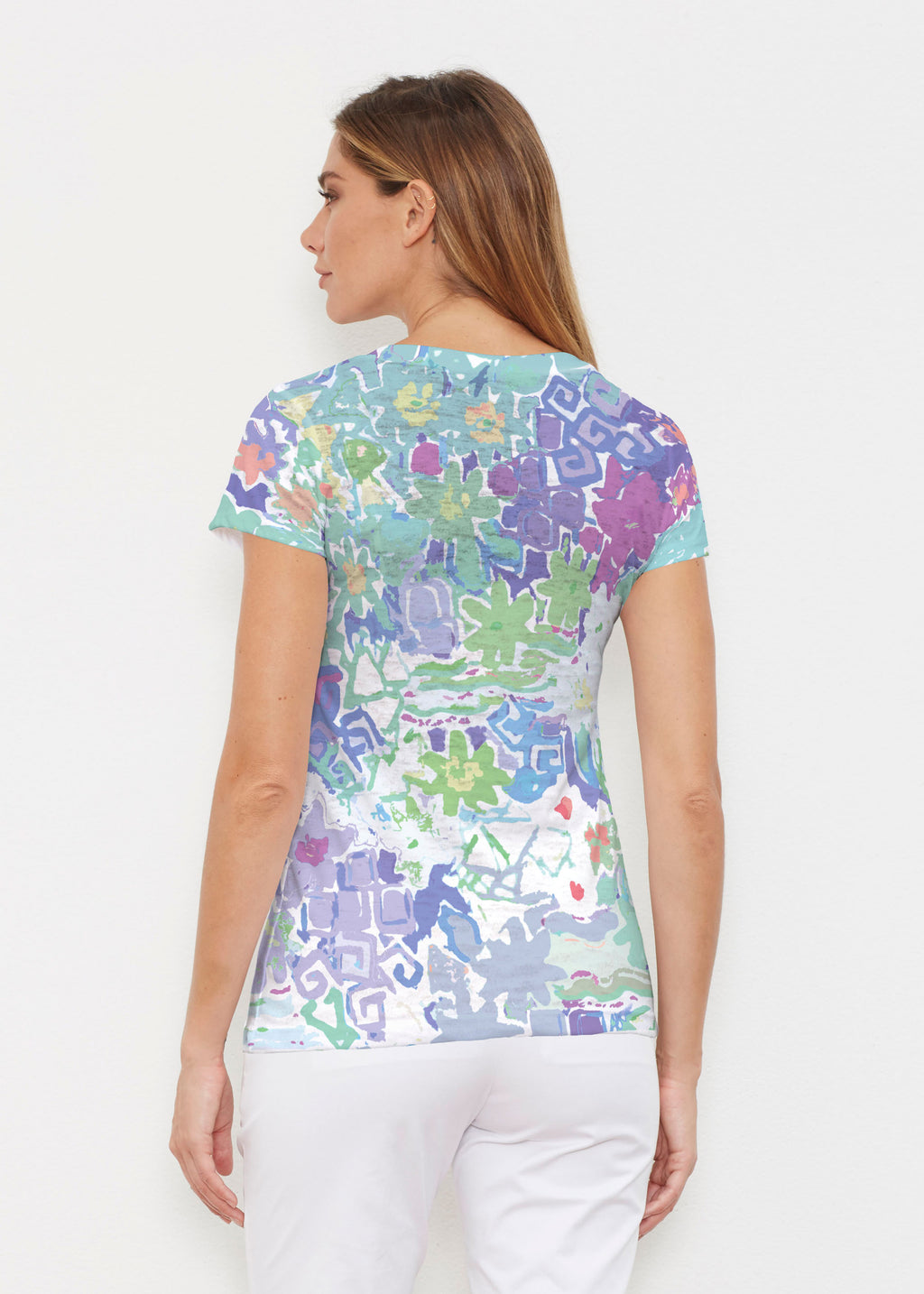 Created in soft, casual burn-out Signature blend, this tee features a subtle v-neck and cap sleeves.