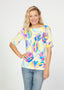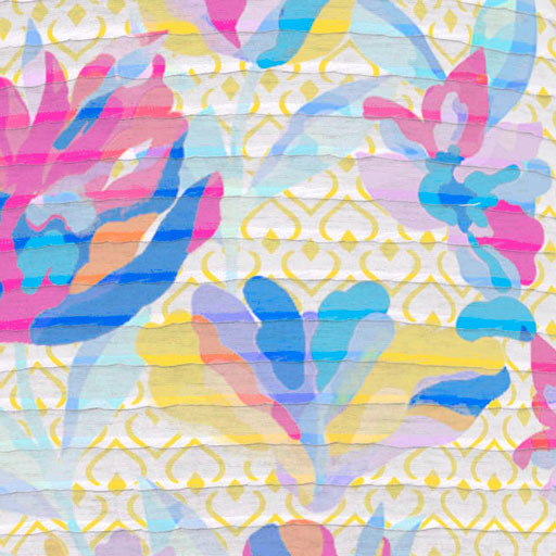 Vivacious tropical blooms amongst a lemony yellow & white spade design on front and a southern turquoise and white spade design on back.