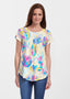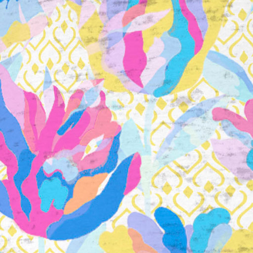 Vivacious tropical blooms amongst a lemony yellow & white spade design on front and a southern turquoise and white spade design on back.