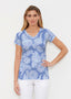 A beautiful print with blooming florals and detailed vines with contrasting print on the sleeves designed by Diane Kappa.