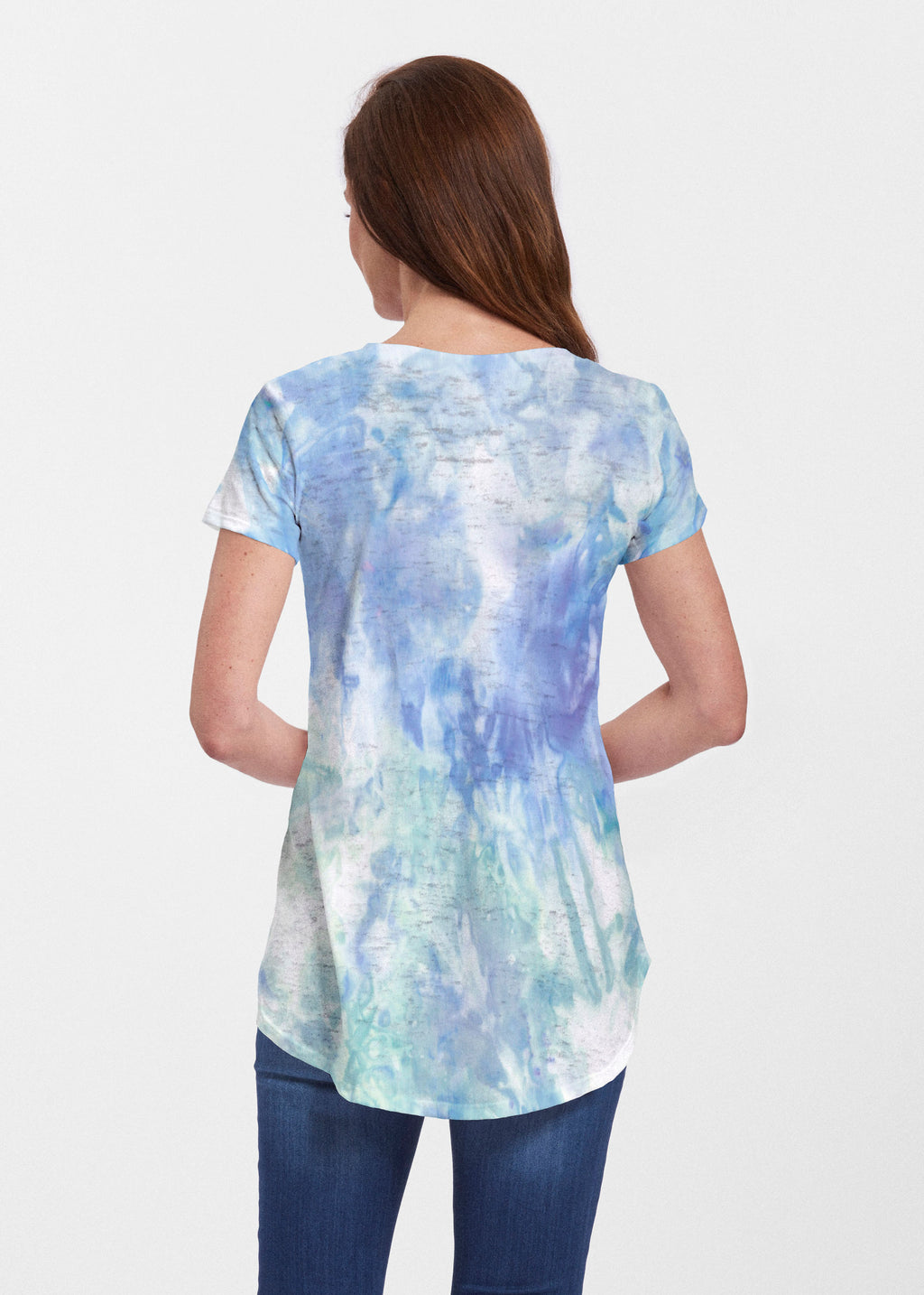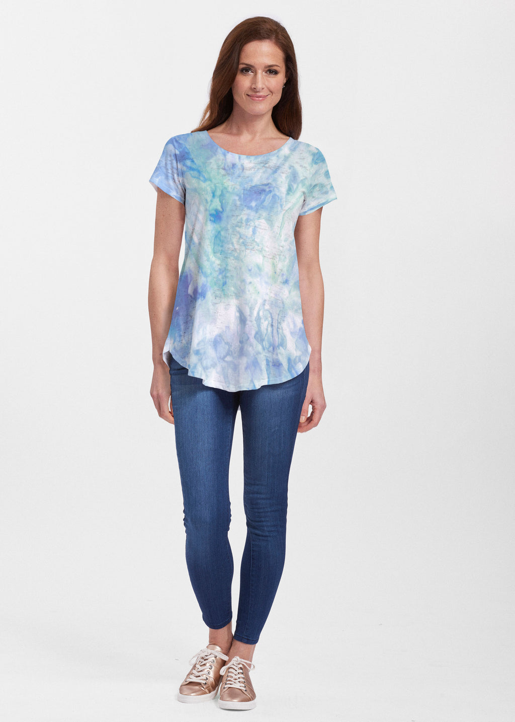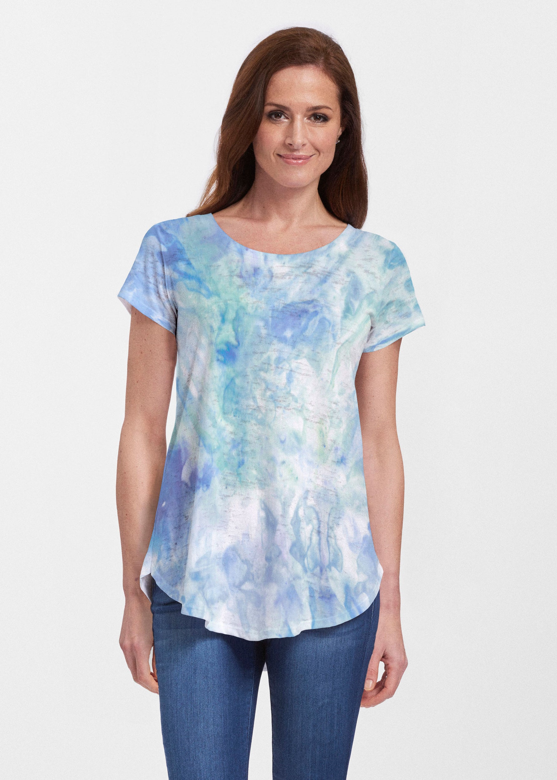 An effortlessly flattering tunic in our soft Signature burnout fabric featuring short sleeves and a scoop neck with a body that flows into a full, swinging shirttail hem.