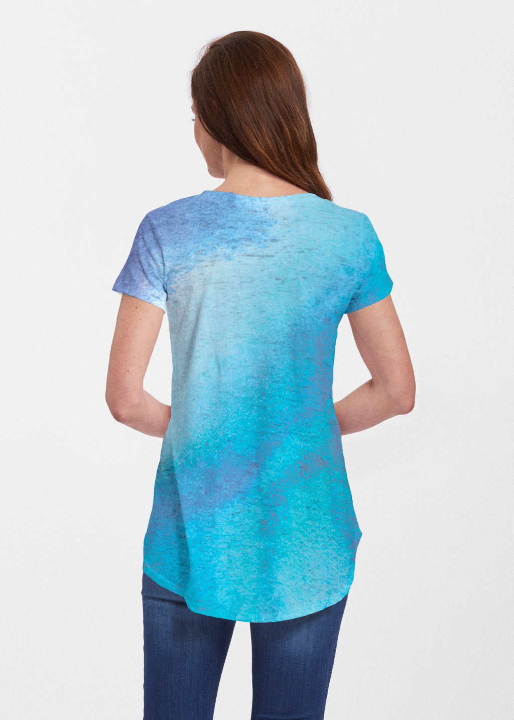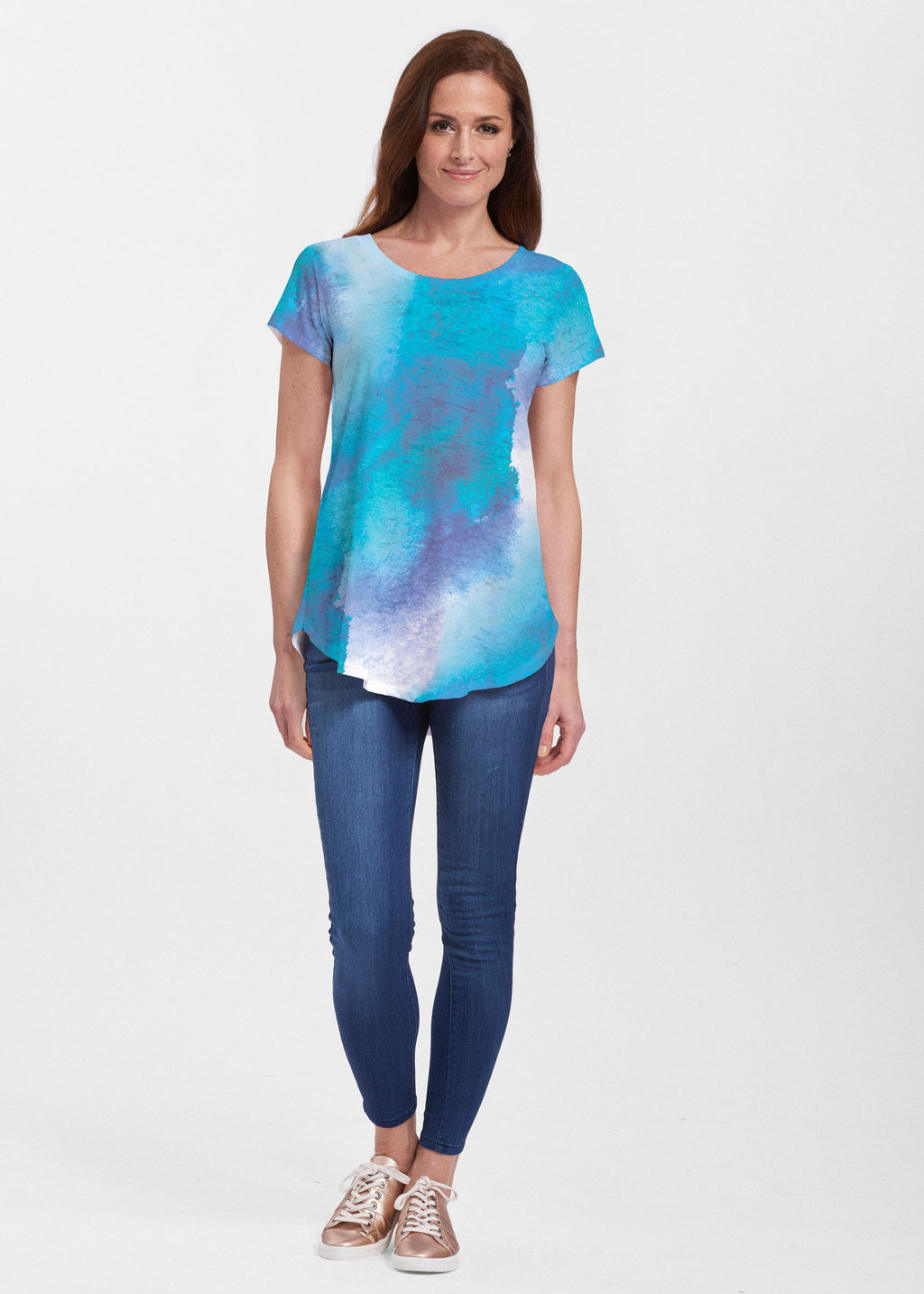 An effortlessly flattering tunic in our soft Signature burnout fabric featuring short sleeves and a scoop neck with a body that flows into a full, swinging shirttail hem.