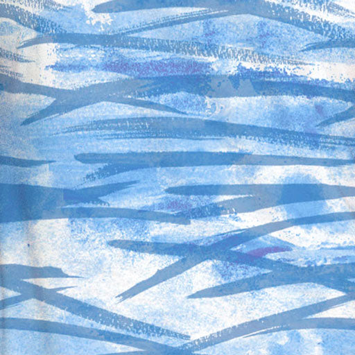 Waves of navy painted stokes amongst blue watercolors on white background.