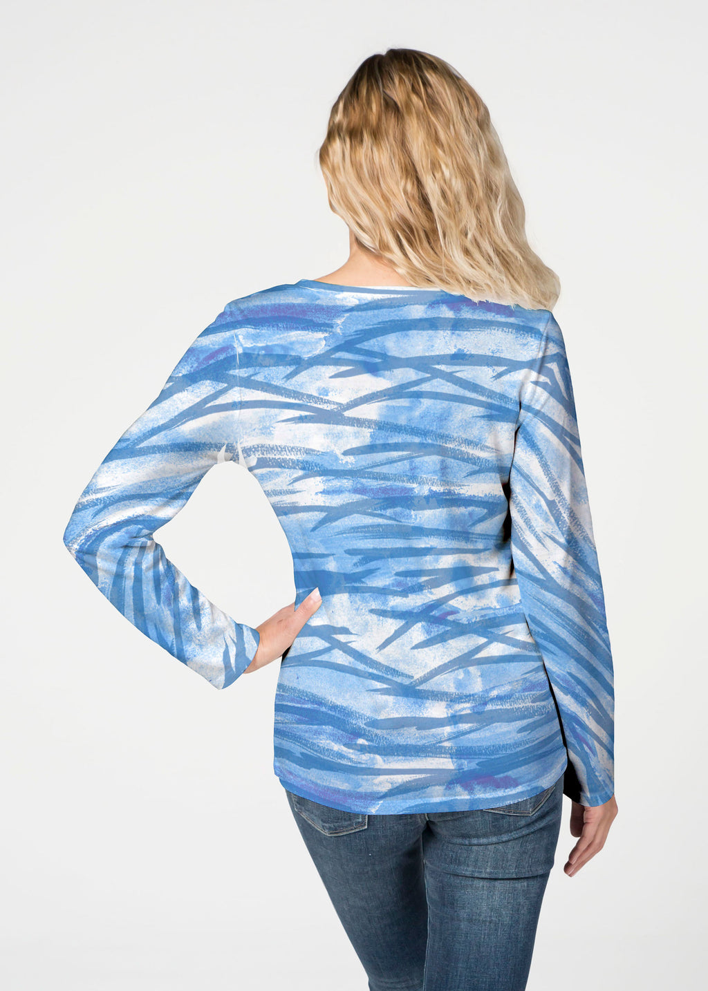 Our French Terry top is comfort and style all in one! Our French Terry top that features long sleeves, a V-neck and a more fitted silhouette that looks stylish in any print.