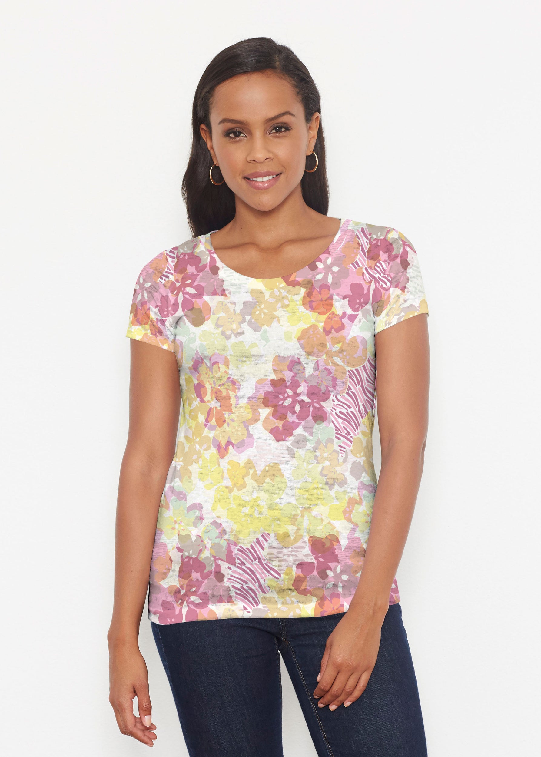 Our scoop neck tee in our casual and supremely soft Signature burnout blend is a best-selling collectible! A relaxed fit falls at the hip.