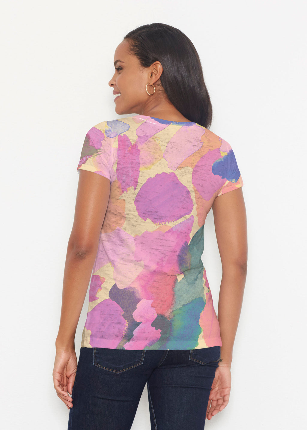 Is a bold and vibrant acrylic-inspired print design that showcases splashes of blues, pinks, oranges, and greens. This lively and energetic design captures the essence of creativity and spontaneity.