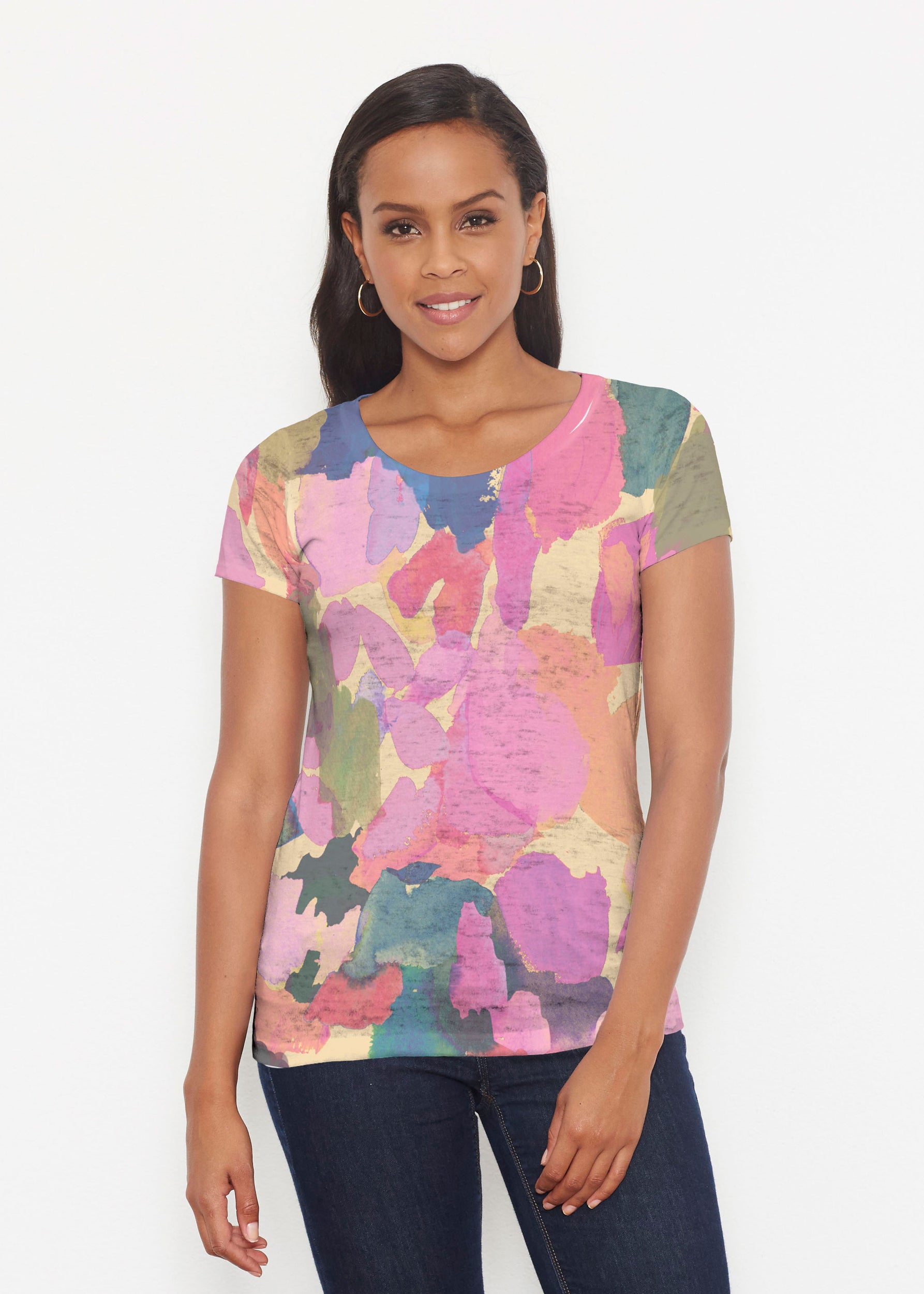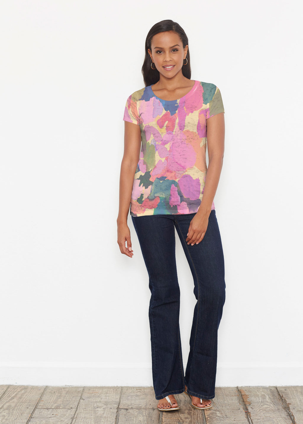 Our scoop neck tee in our casual and supremely soft Signature burnout blend is a best-selling collectible! A relaxed fit falls at the hip.