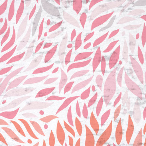 The stylized leaf pattern add a touch of nature-inspired elegance to the print, creating a visual appeal that is both captivating and timeless. The combination of orange, pink, and gray colors brings a unique and contemporary twist to the design, evoking a sense of warmth, femininity, and sophistication.