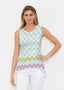 This tank is the perfect combination of an elegant shape with a sporty look. A high-low cascading hemline falls loosely over the hip in our Signature burnout fabric. No sleeves and a shallow scoop neckline give this tank its sporty vibe. -- Your one-of-a-kind garment is created using all-over soft garment sublimation printing. Selected designs are individually printed into your garment. Cotton/Polyester blend.