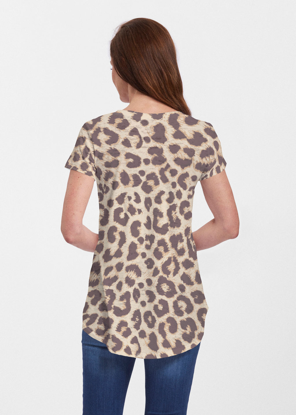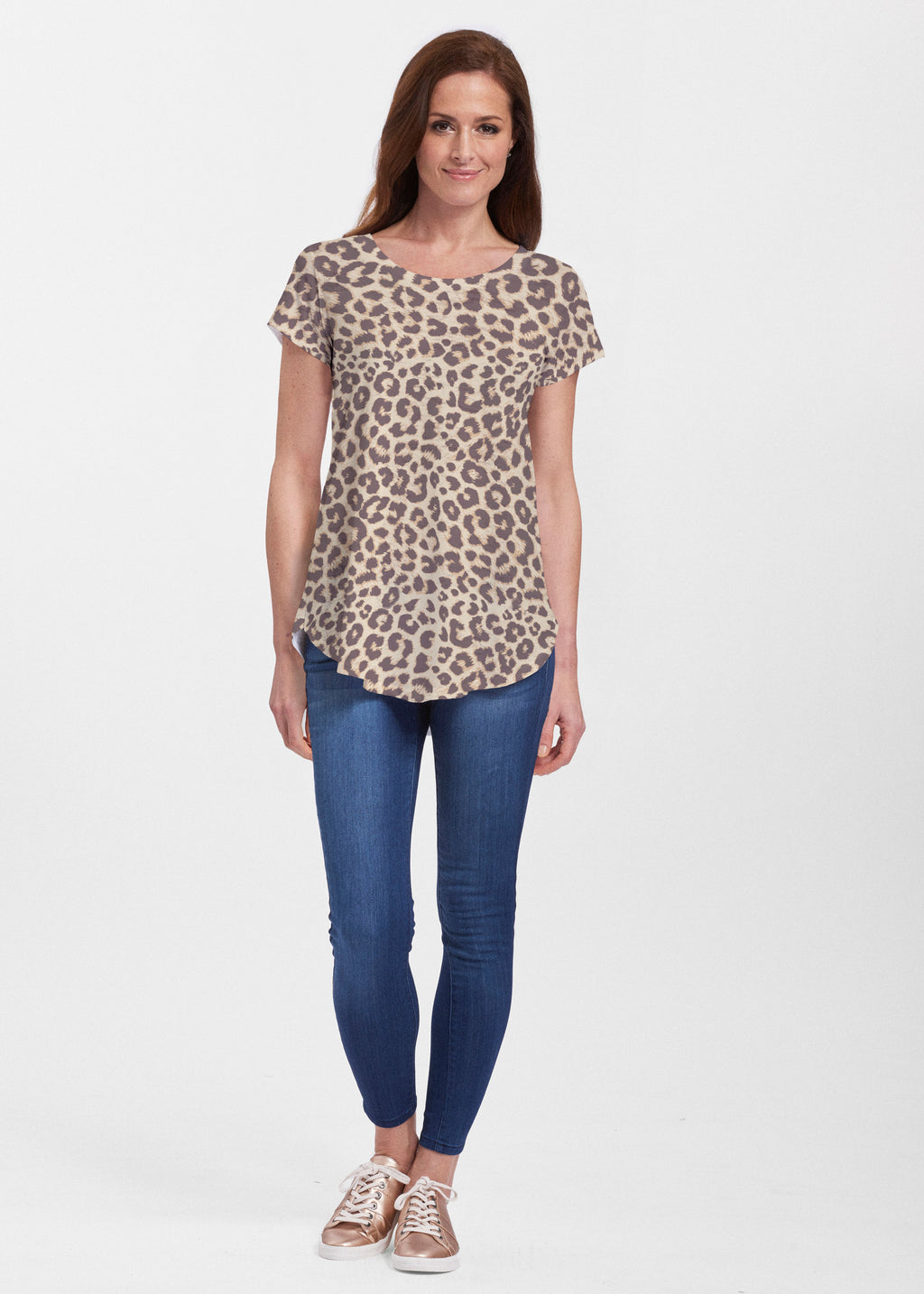 An effortlessly flattering tunic in our soft Signature burnout fabric featuring short sleeves and a scoop neck with a body that flows into a full, swinging shirttail hem.