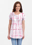 A stunning textured linear check design in pink and white, designed by Susan Werner.